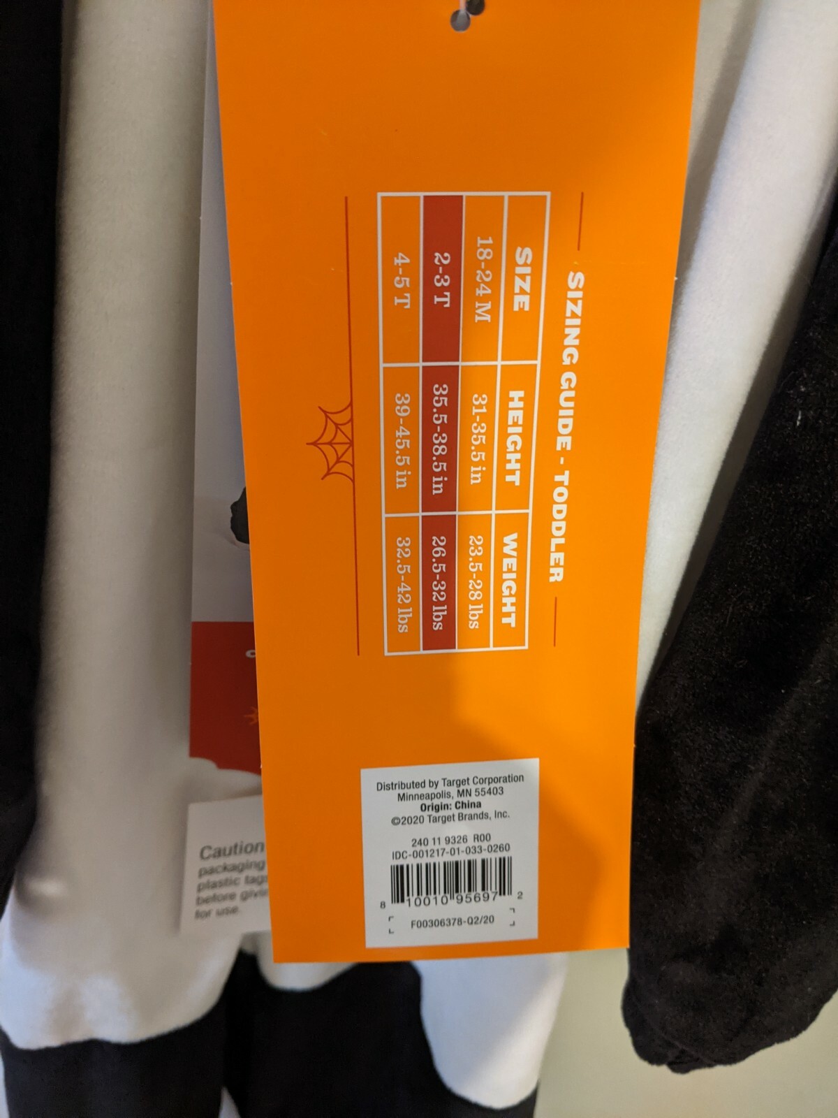 HYDE EEK KID'S PLUSH PANDA BEAR JUMPSUIT COSTUME, BLACK/WHITE Size 2t- 3t