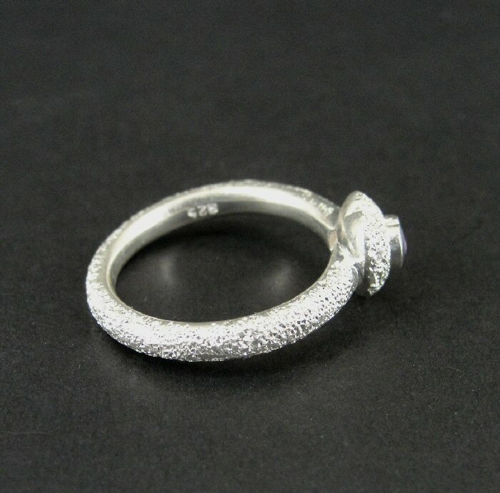 Ring Silver Heart Purple Amethyst Stone Texture Band Sterling Silver 925 Size 8