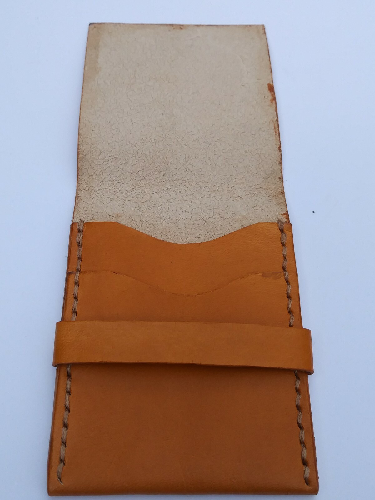 Real Leather Vertical Wallet, dyed desert tan, 3 pockets, strap, handmade