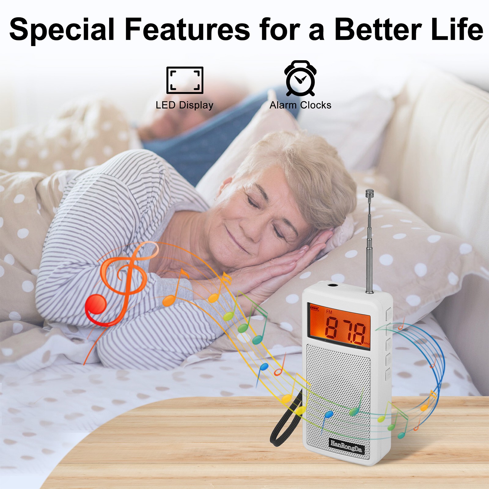 Portable AM/FM Radio Pocket Digital Radio Receiver w/ LCD Screen Speaker Alarm