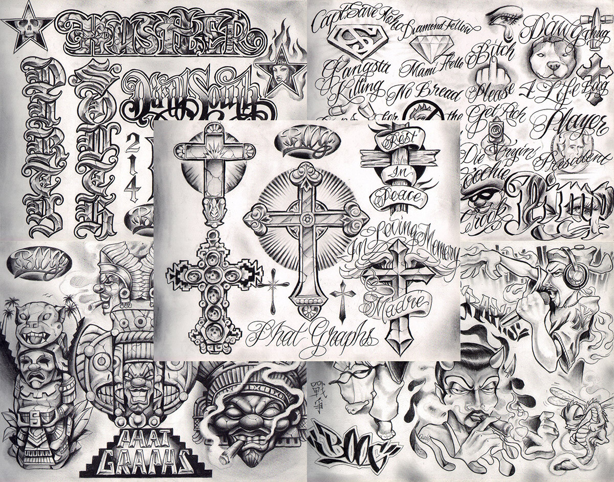Boog From The Streets With Love Gangsta Style Tattoo Flash 10 Sheet Set 11x14 M