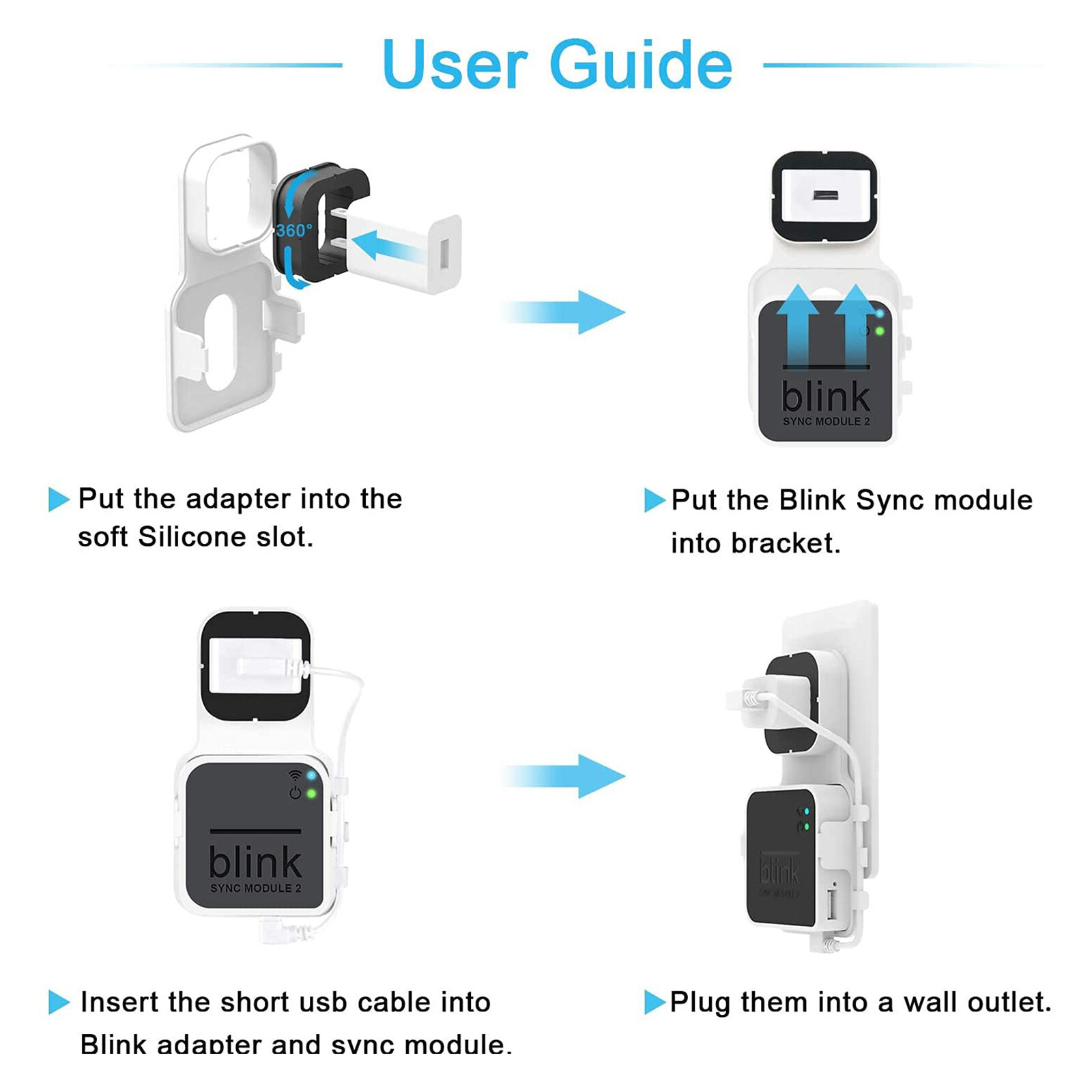Outlet Wall Charger Mount Bracket Holder with USB Cable for Blink Sync Module 2