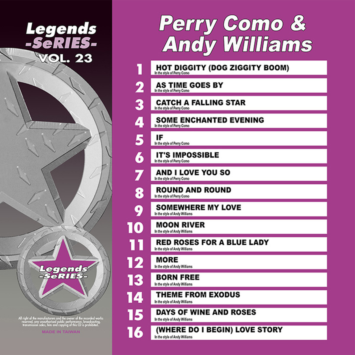 PERRY COMO ANDY WILLIAMS LEGENDS SERIES VOL-23 KARAOKE CDG NEW IN PLASTIC PRINT