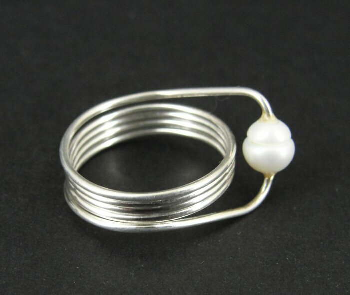 Ring Silver Wire with Pearl Top Sterling Band Size 8.25 Ring 8 1/4
