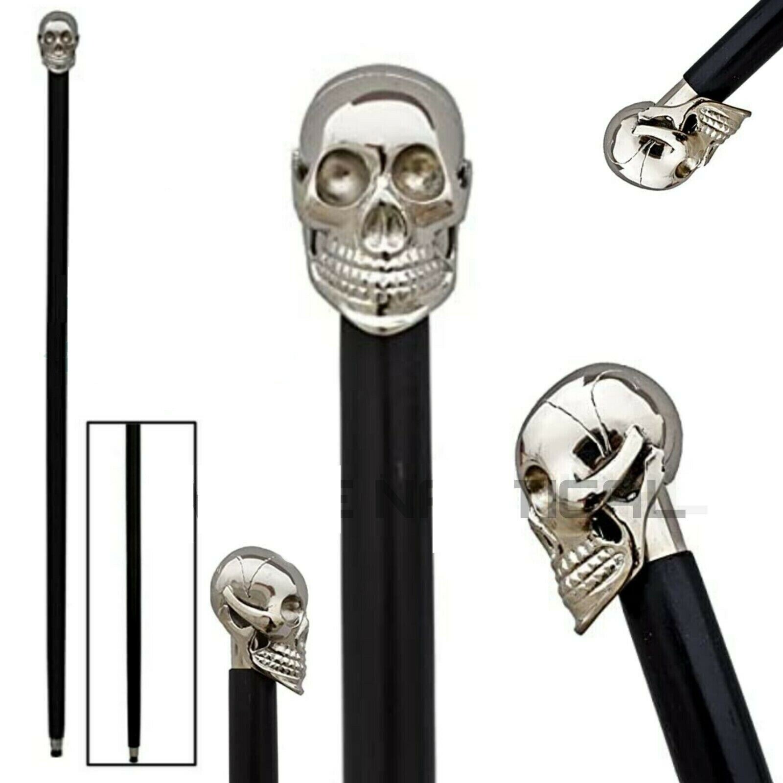 Vintage skull face Nickel designer BLACK Walking Stick Wooden walking stick 1 PC
