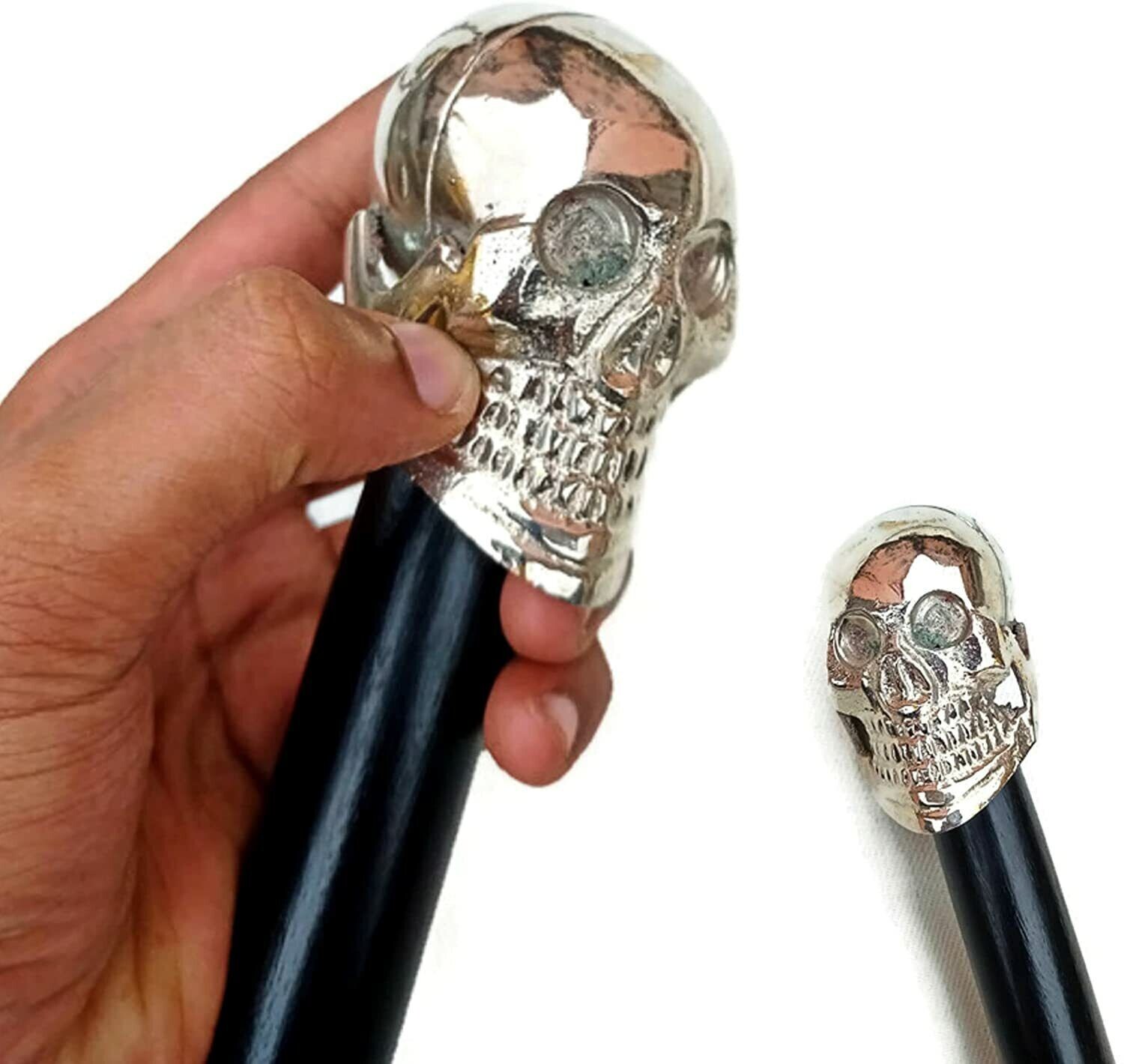 как выглядит Vintage skull face Nickel designer BLACK Walking Stick Wooden walking stick 1 PC фото