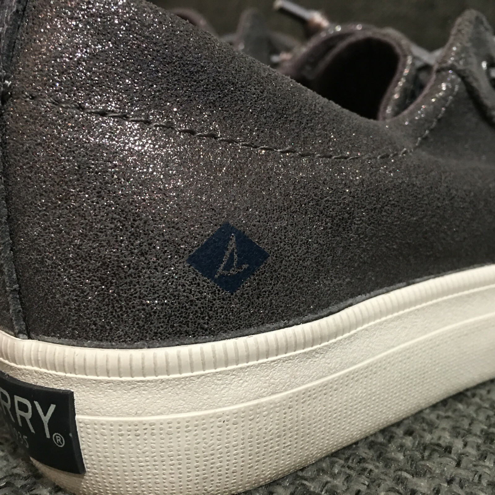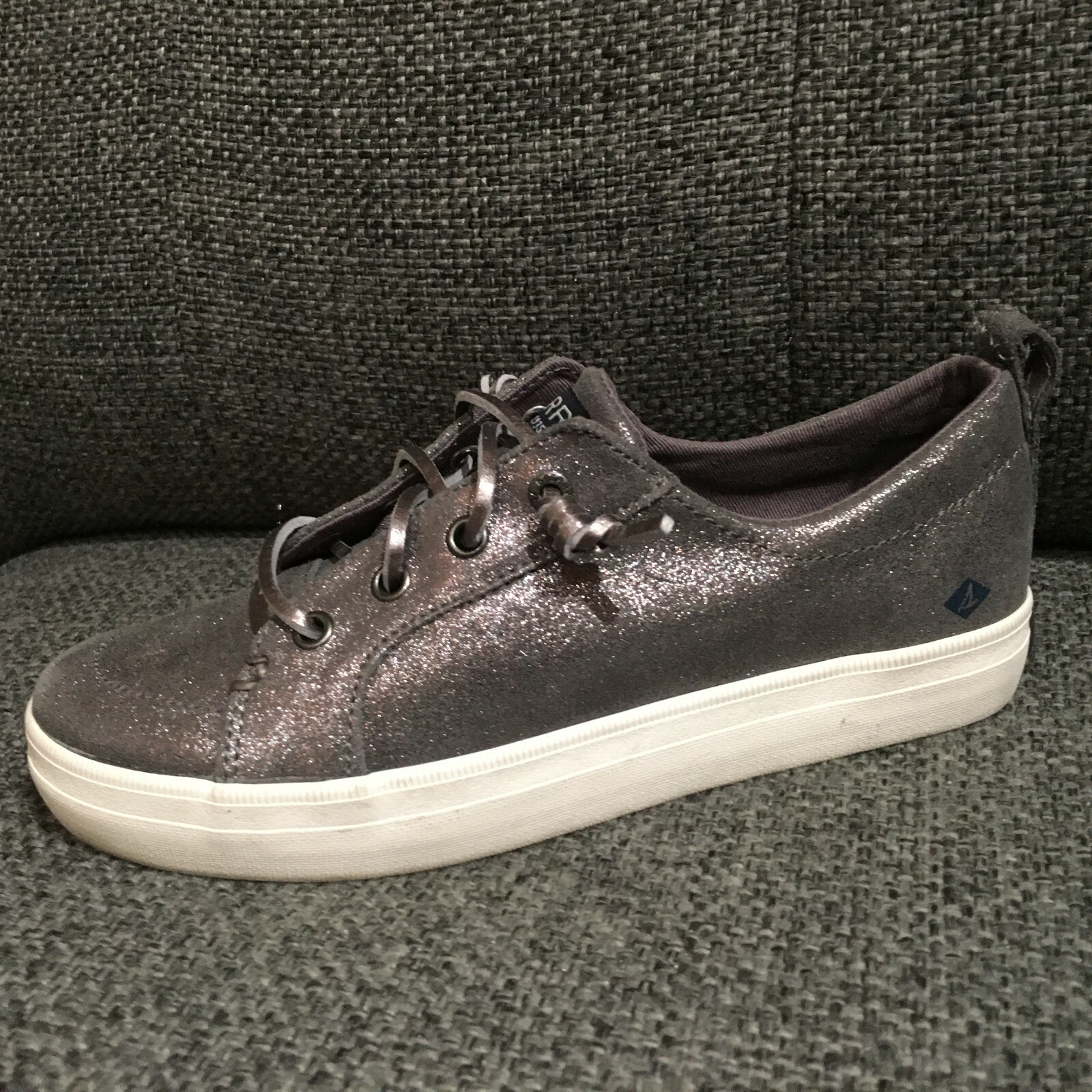 Sperry Top Sider Crest Vibe Gray Shimmer Leather Sneakers Shoes Women's Sz 3M