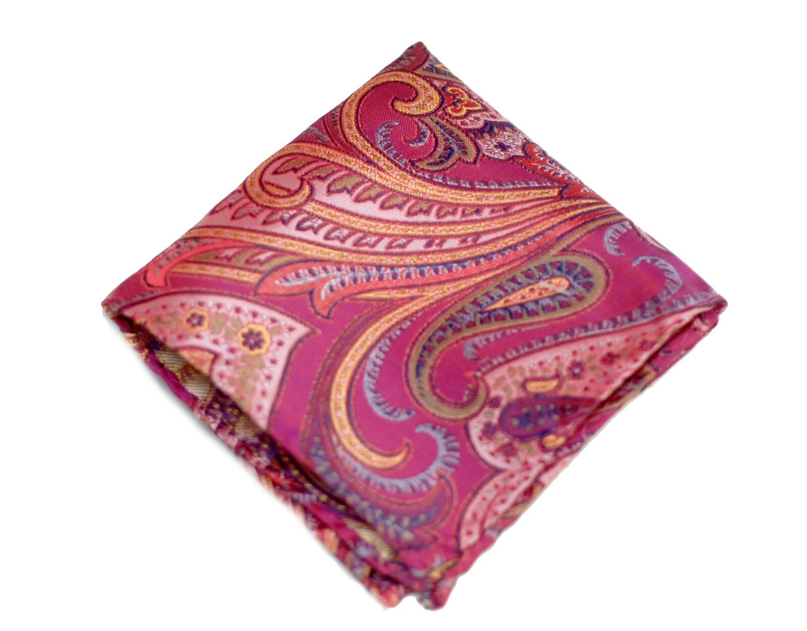 Umberto Algodon Pink Gold Tapestry Paisley Woven Silk Pocket Squa 75 Retail New