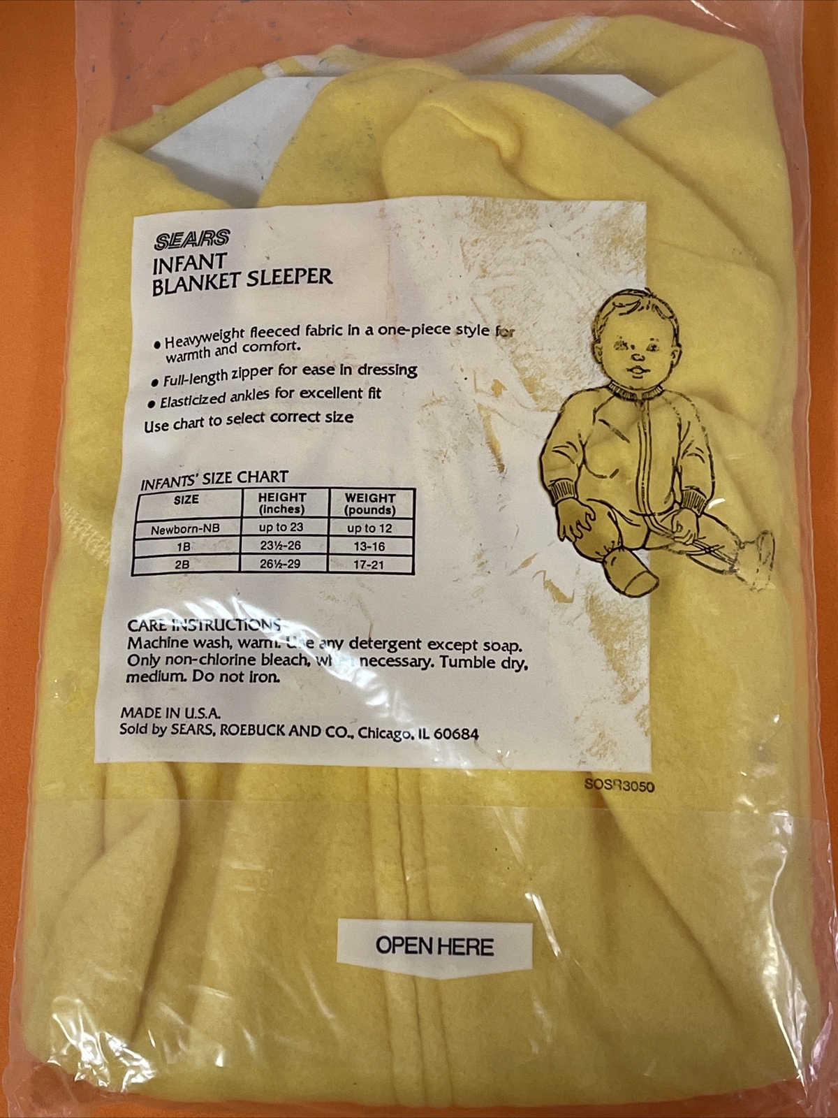 Vintage Sears Roebuck And Co Yellow Blanket Sleeper 1 B NOS USA 13-16 Lbs Fleece