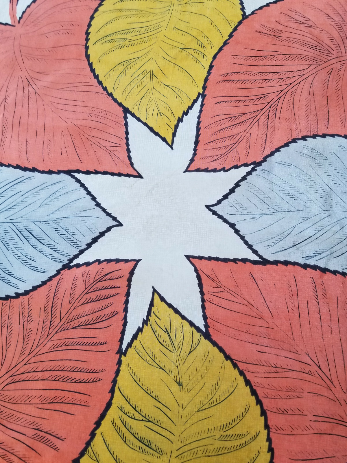 как выглядит COLORFUL SYMMETRICAL VINTAGE AUTUMN LEAVES 1960s SILK SCARF 34" x 35" фото