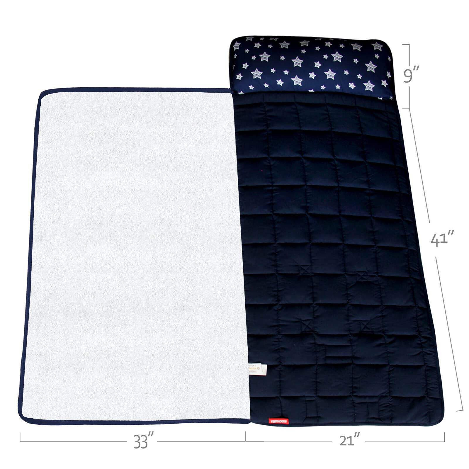 Toddler Nap Mat with Pillow and Fleece Minky Blanket Soft for Kids 21x50''