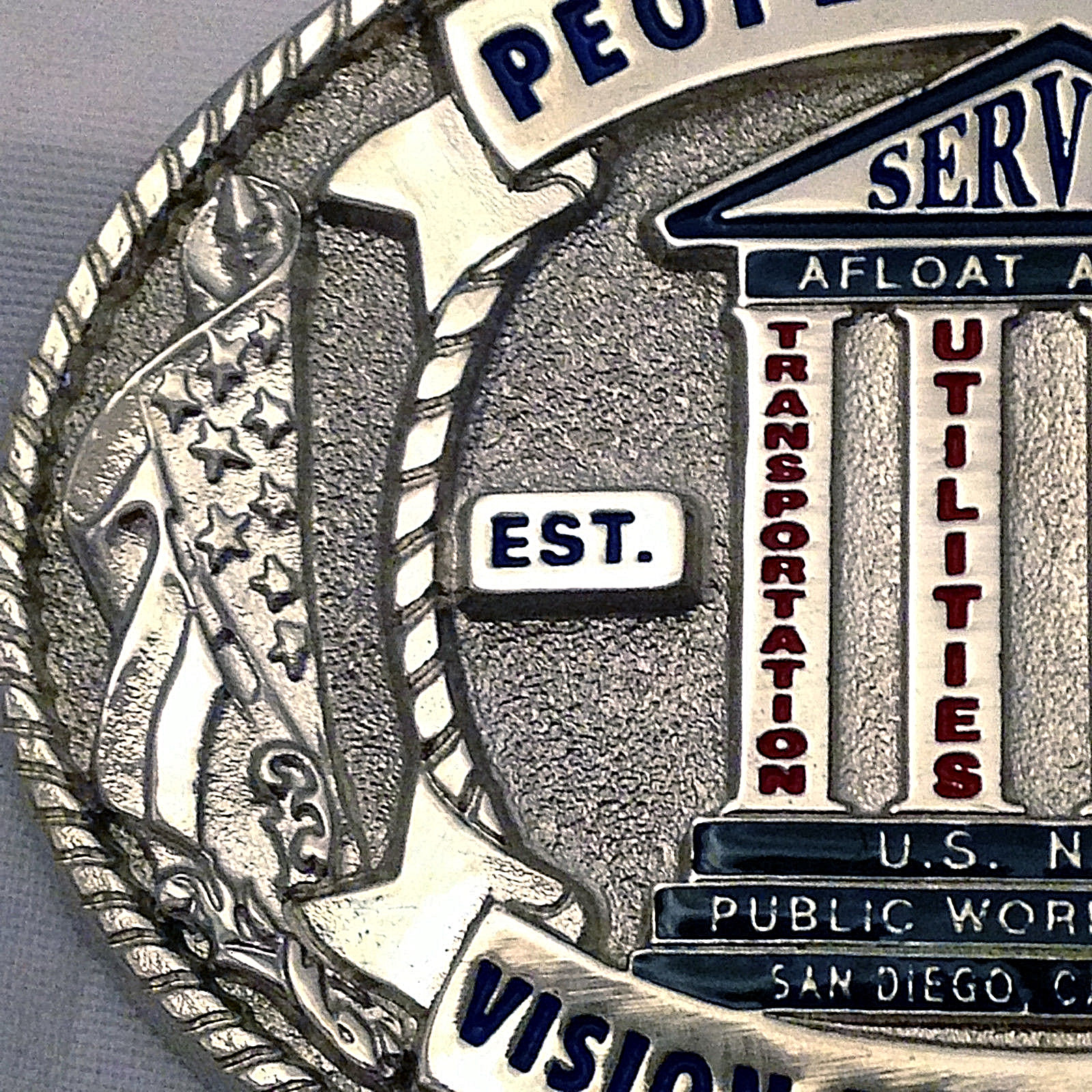 U.S. Navy Public Works Center Belt Buckle Solid Brass, Silver Hand Painted