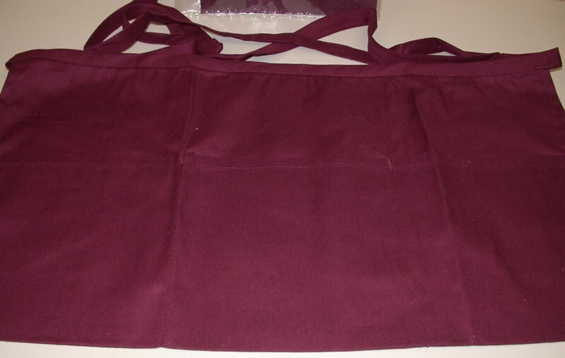 1 Restaurant Style Waist Apron with 3 Pockets Burgundy 23 x 12.5 NEW
