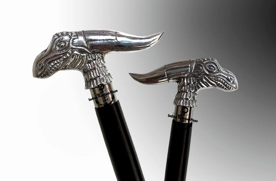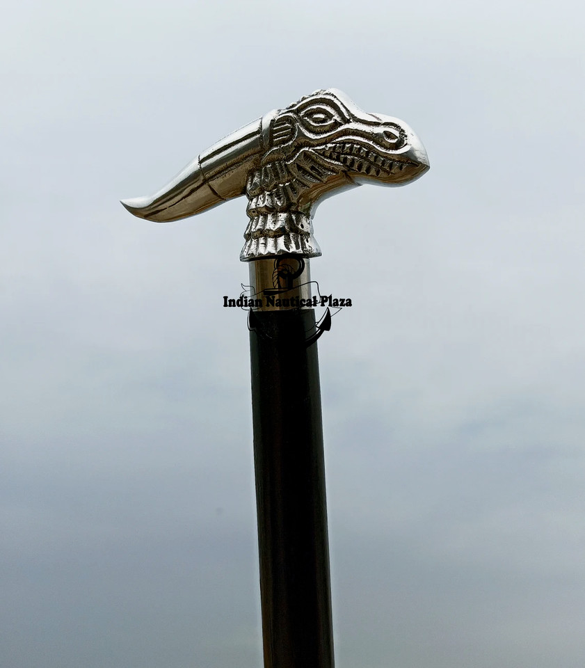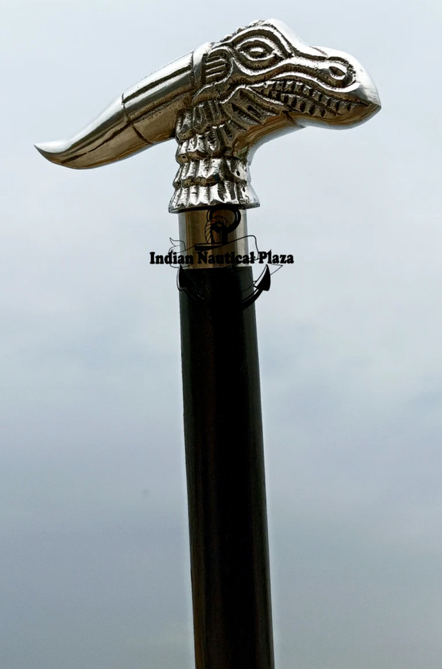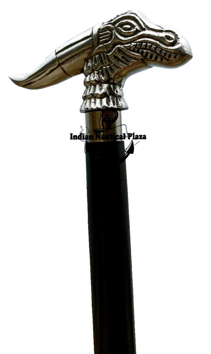 Nautical Collectible Nickel Finish Dragon Handle black wooden walking stick cane