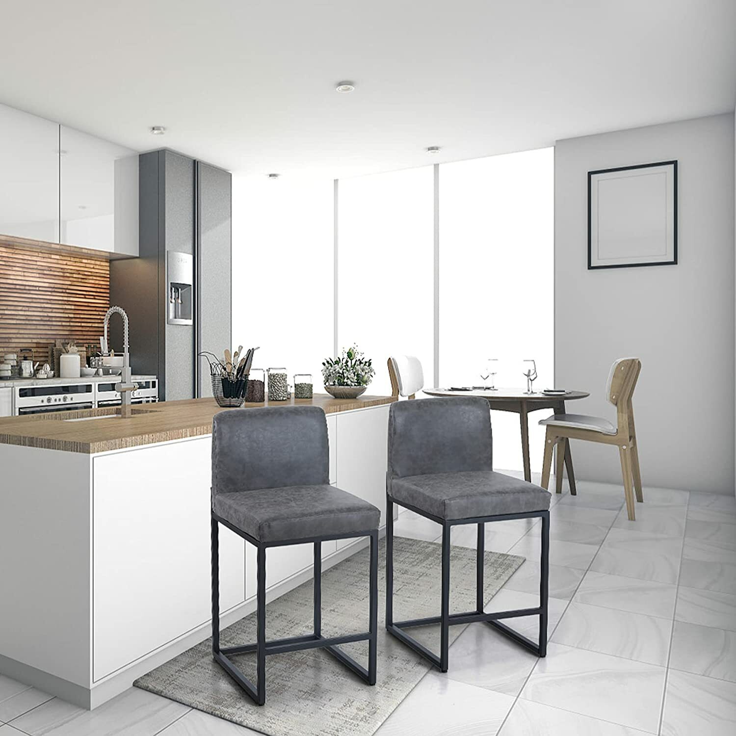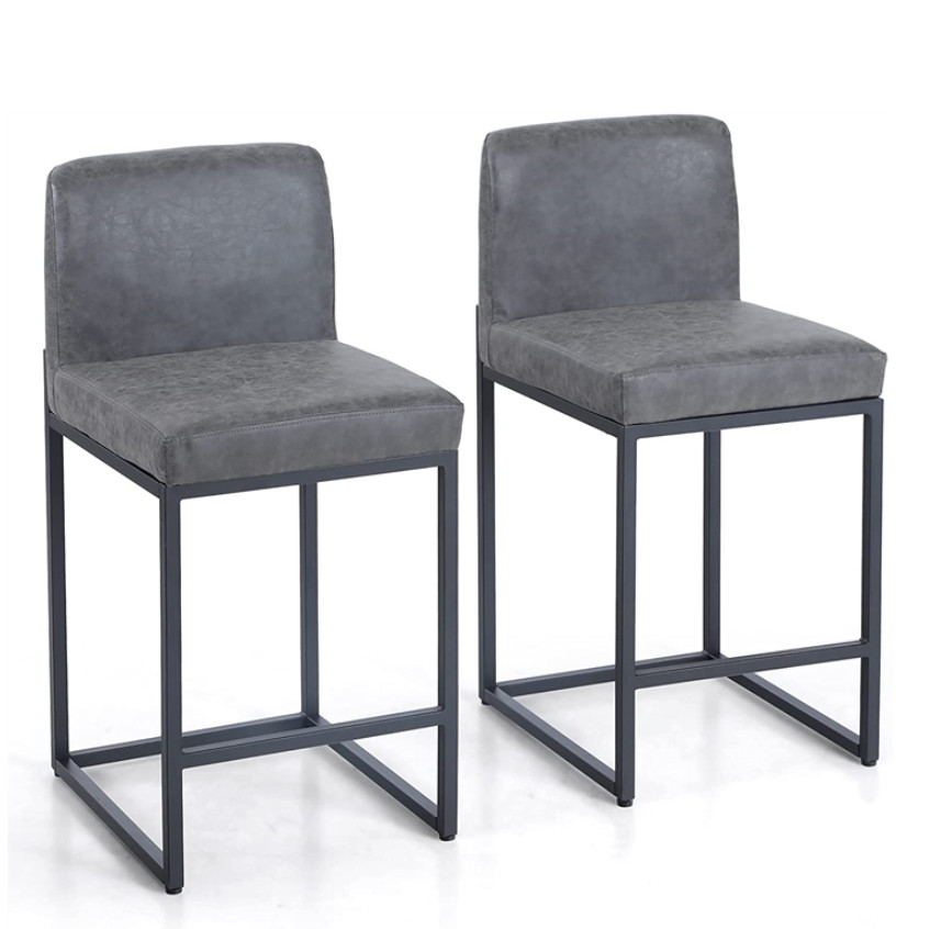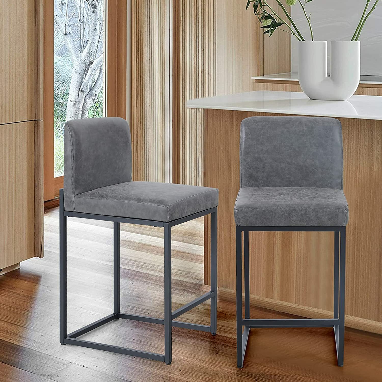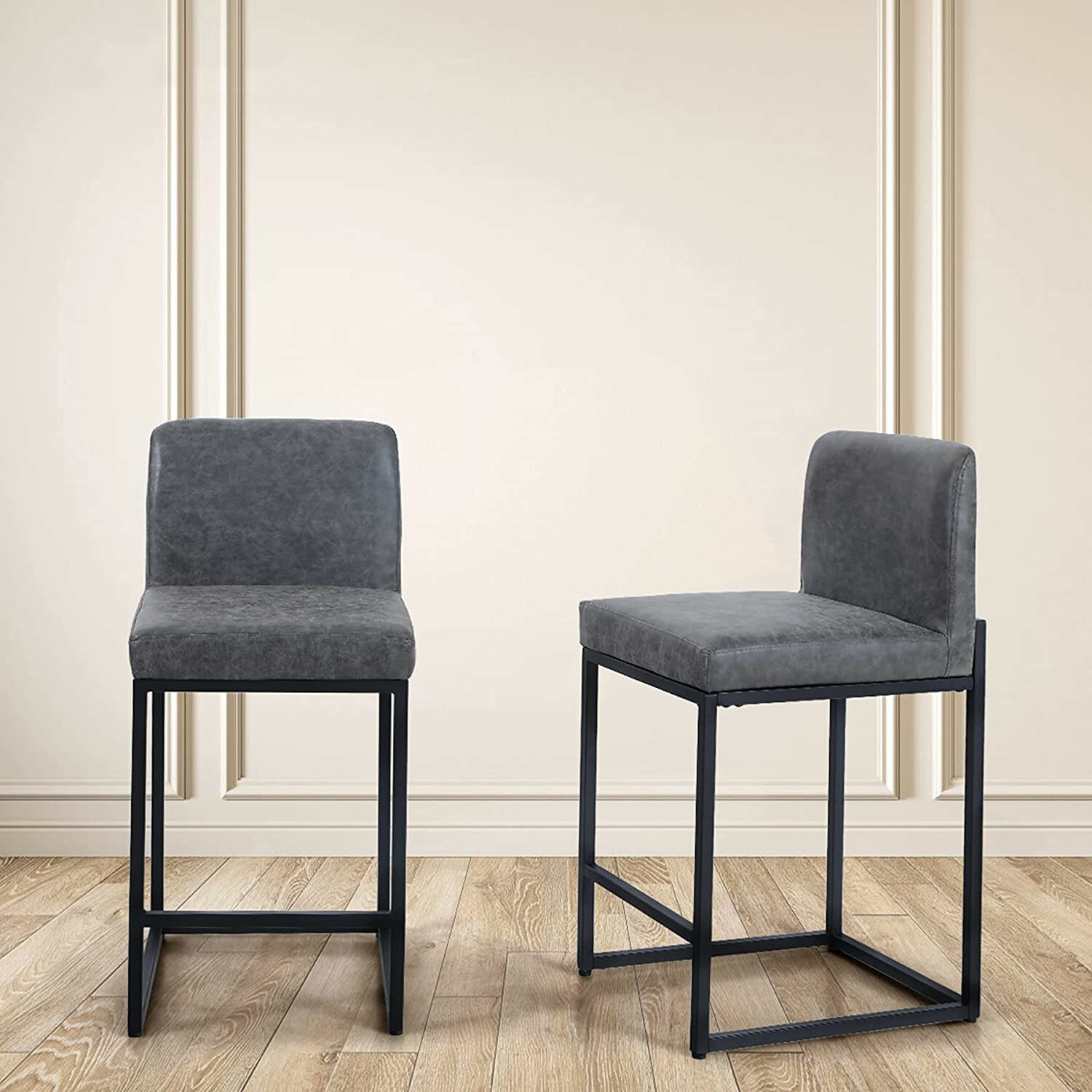 24 Bar Stool Counter Height Bar Chair Set of 2 PU Leather Dining Chair For Pub