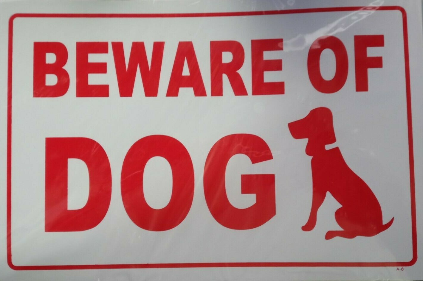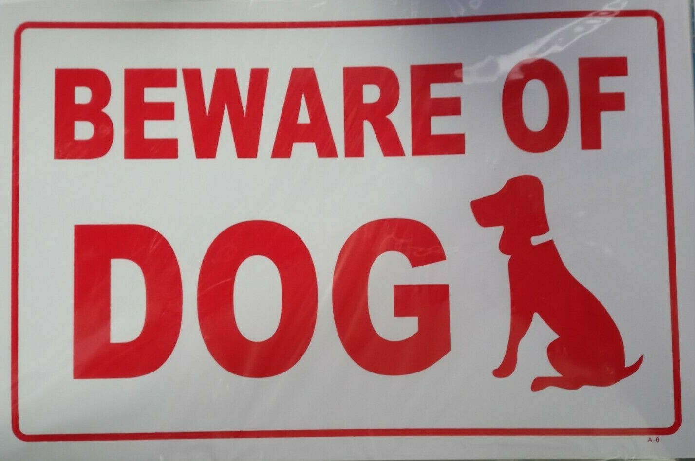 BEWARE OF DOG Sign 8 x 12 Inch - 2 Count, White and Red Indoor Outdoor