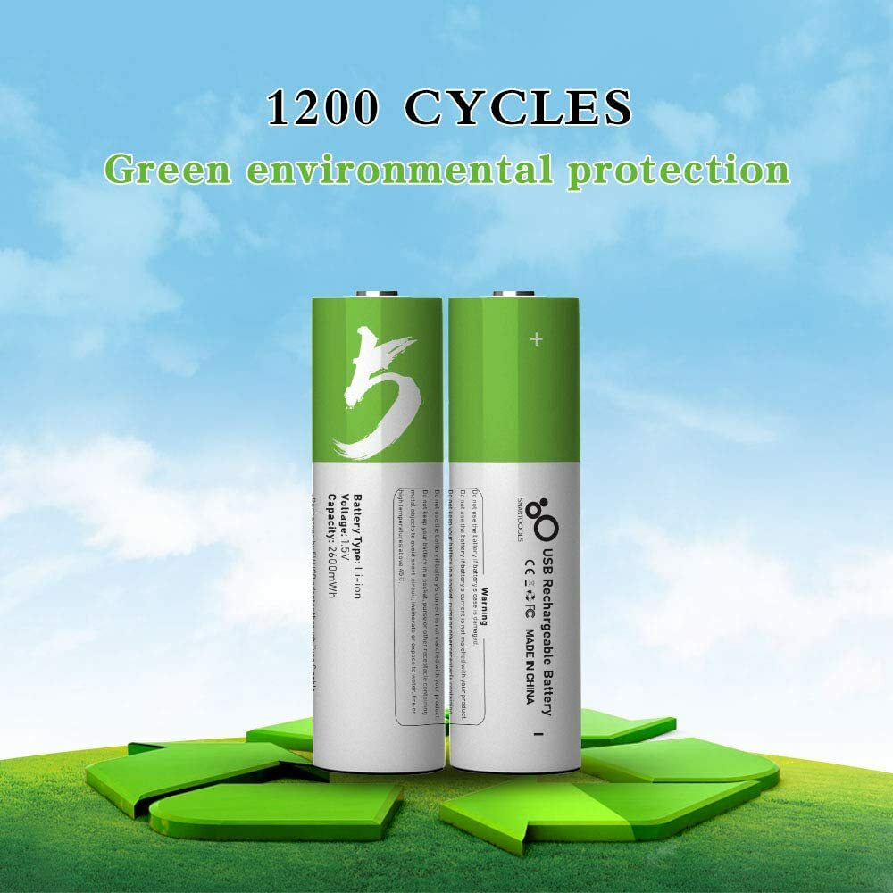 4 Pcs AA Li-Ion Rechargeable Battery Lithium ion 1.5V 2600mWh USB C Fast Charge