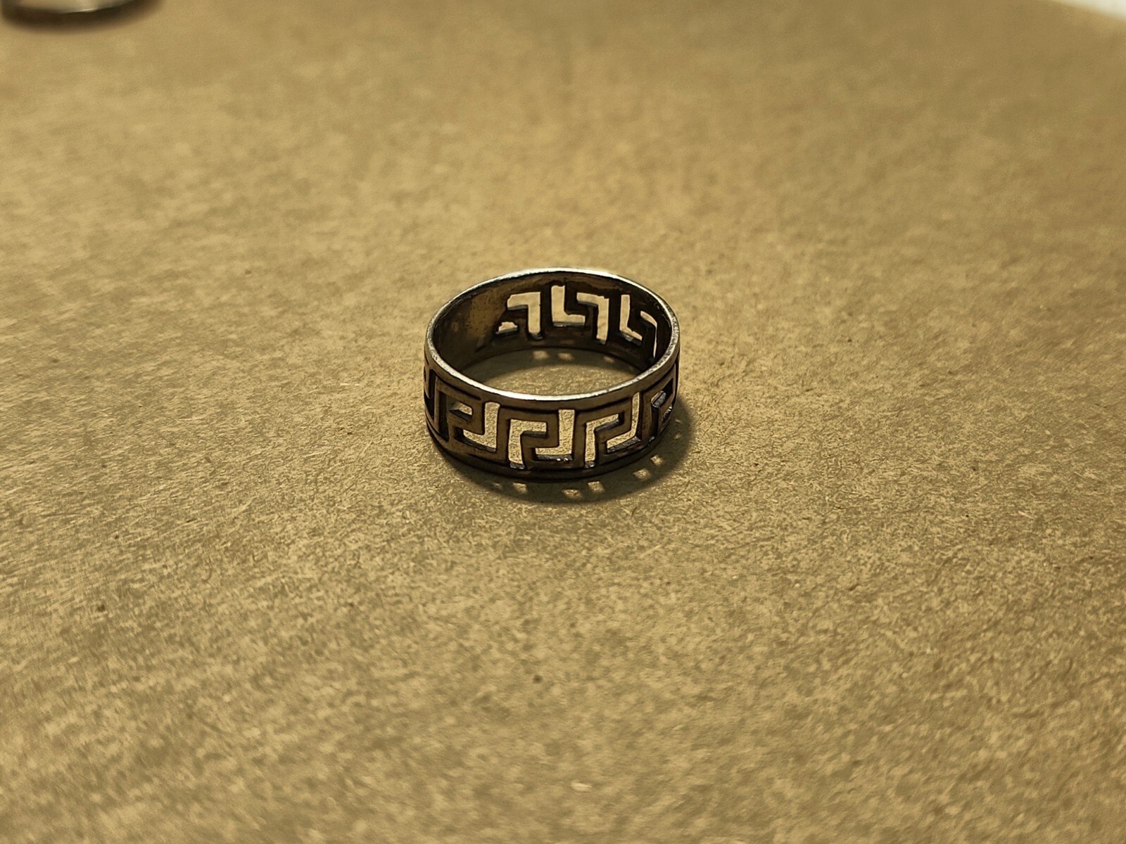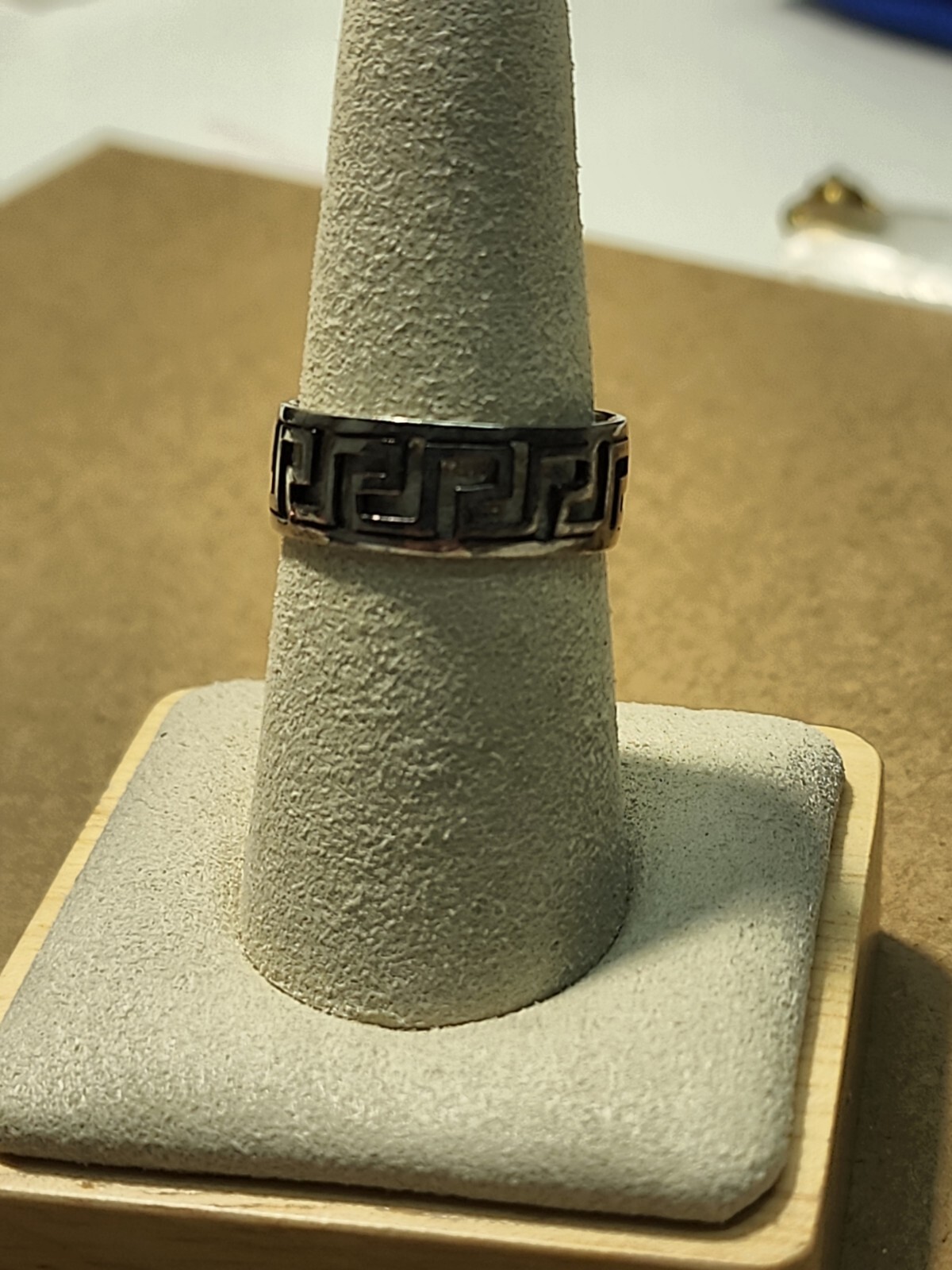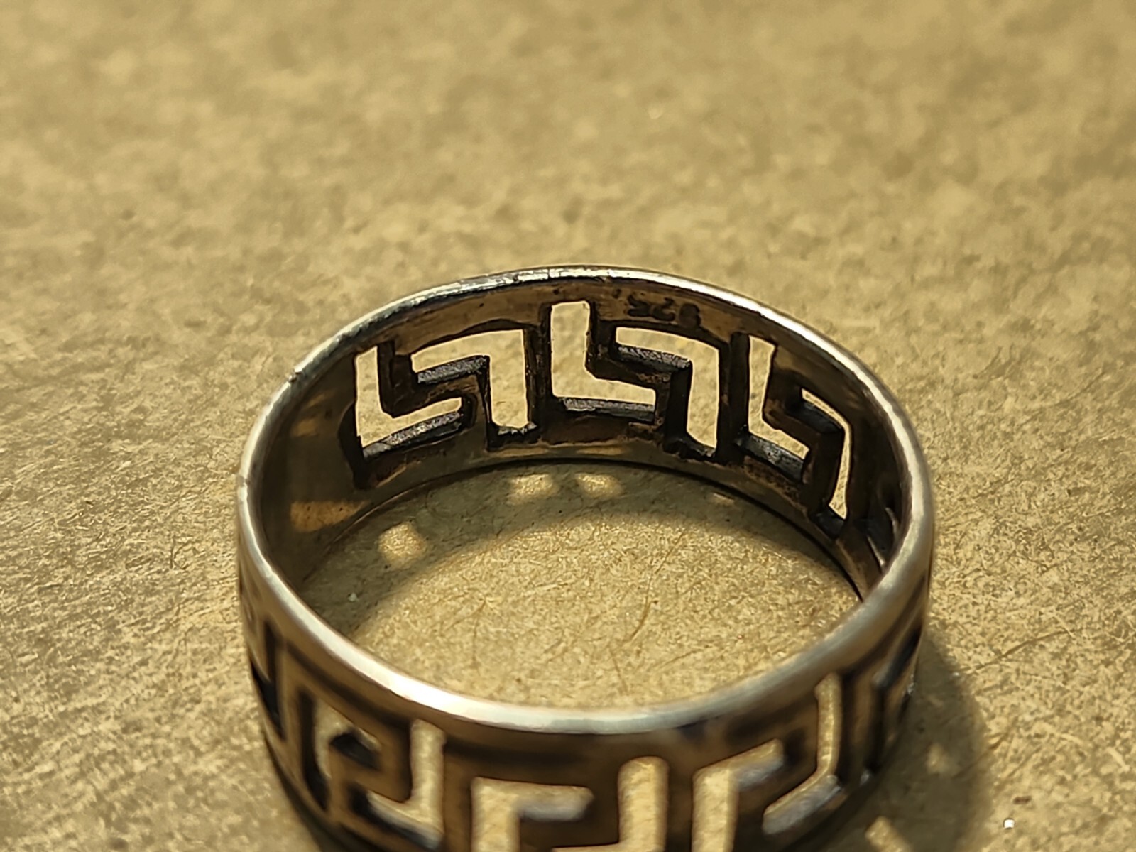 как выглядит Vintage Sterling Silver 925 Greek Key Cutout Ring Band Size 8.75 фото