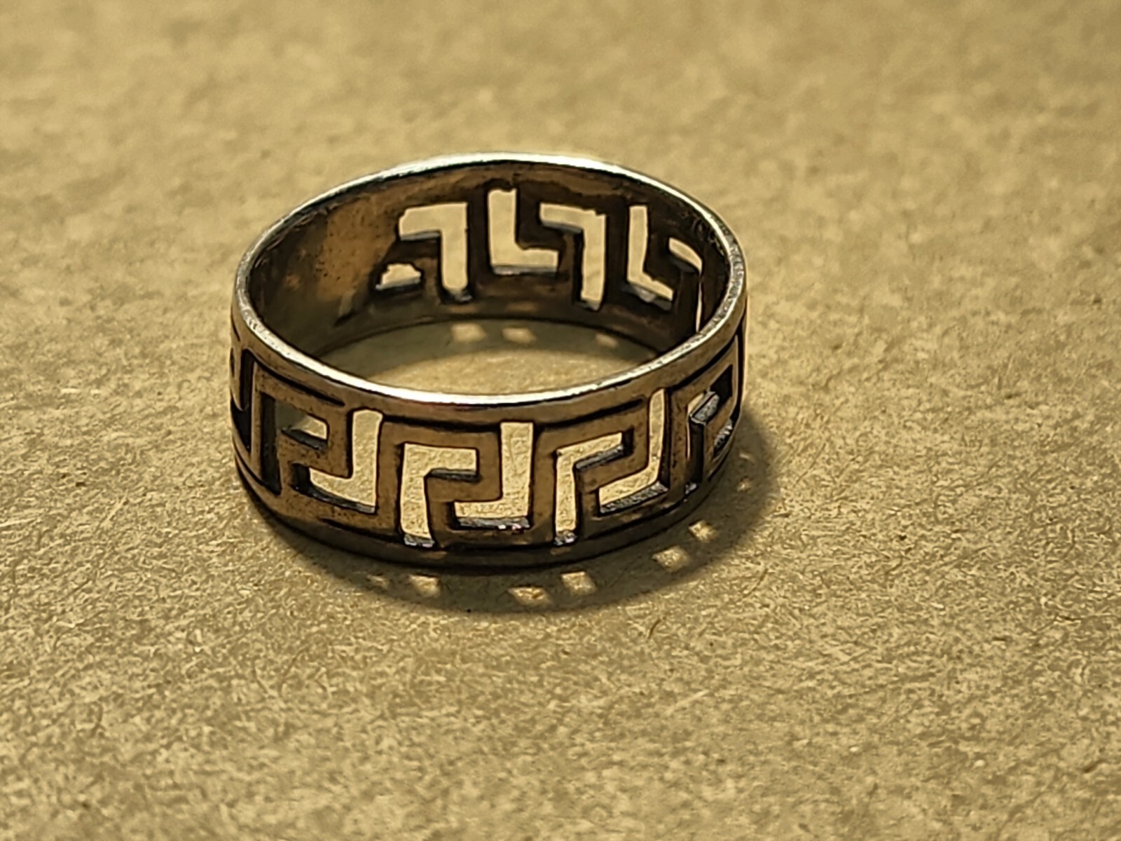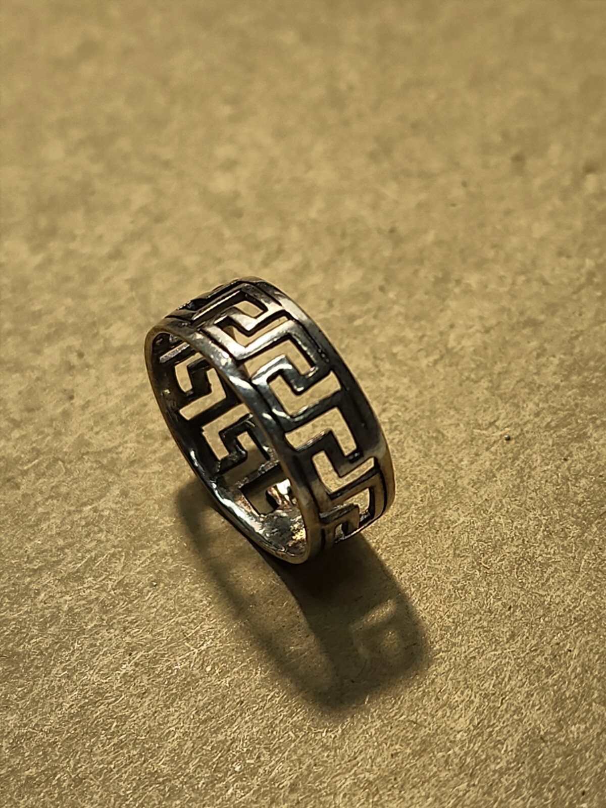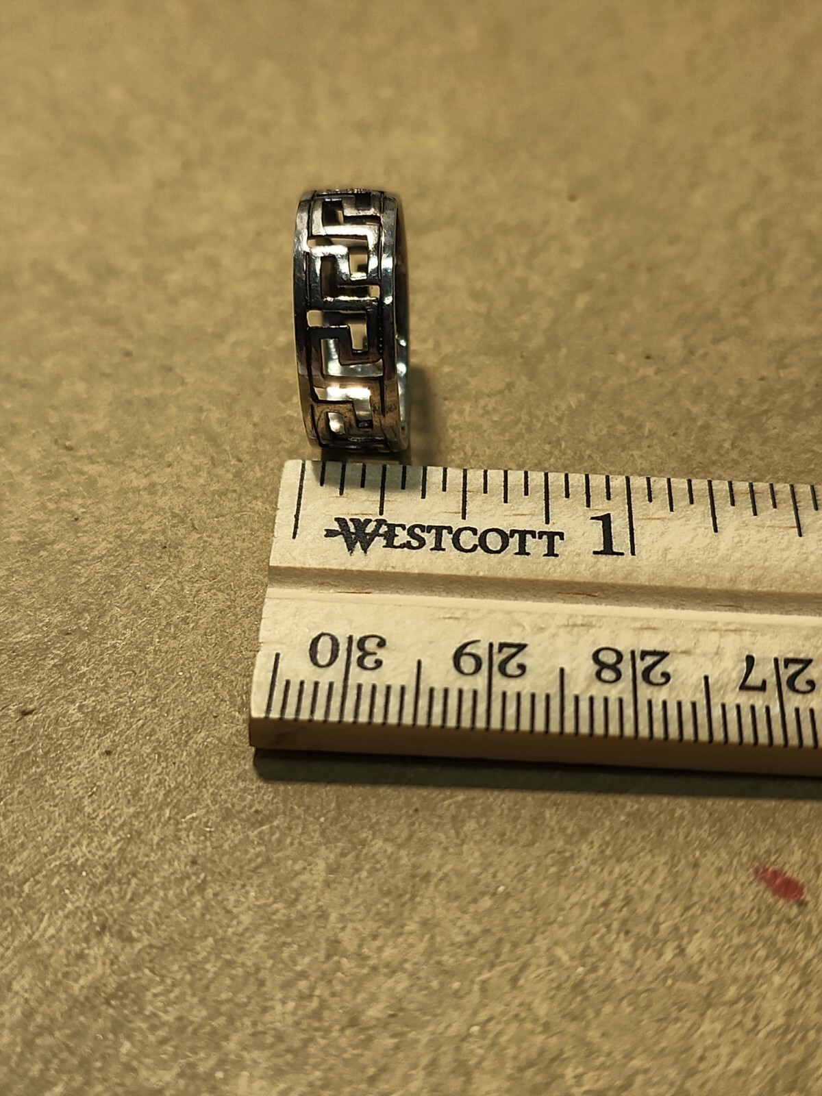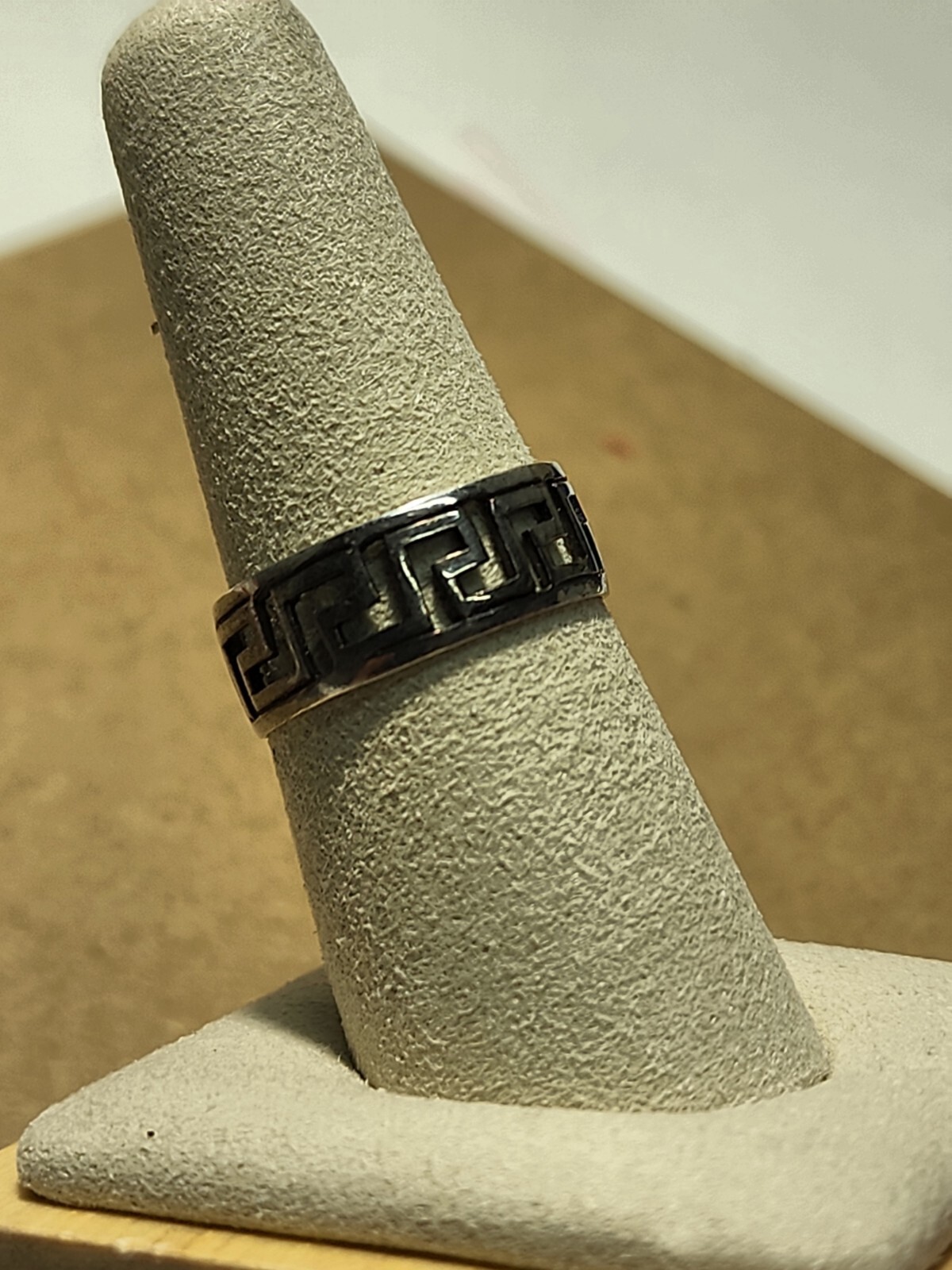 Vintage Sterling Silver 925 Greek Key Cutout Ring Band Size 8.75