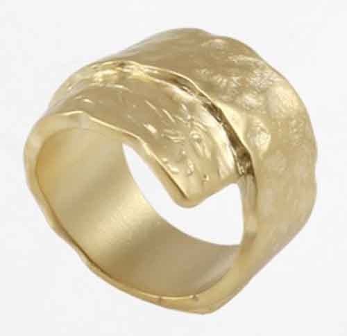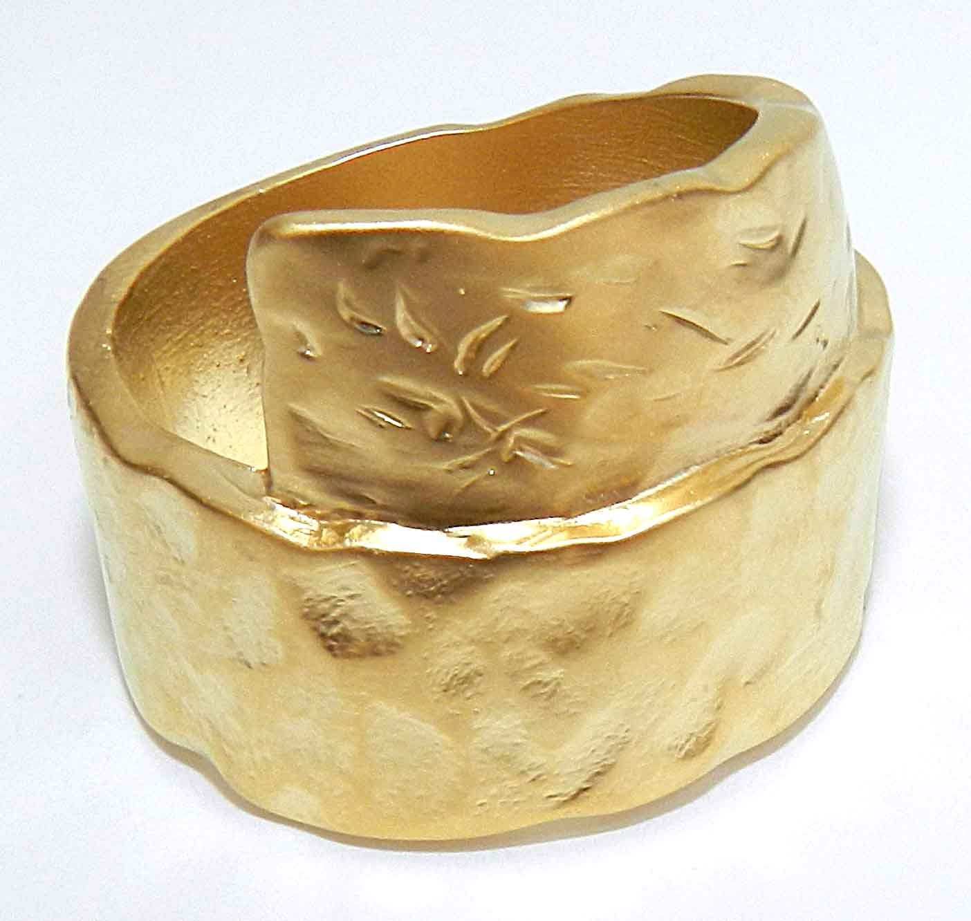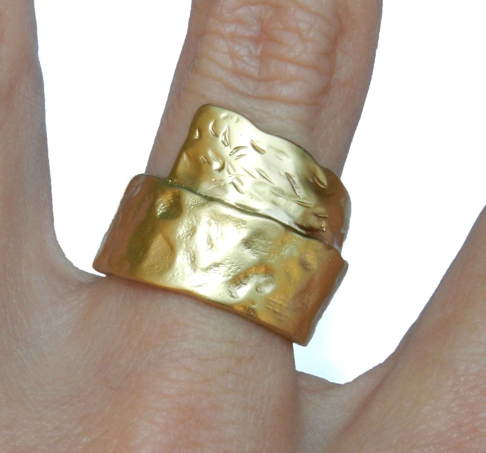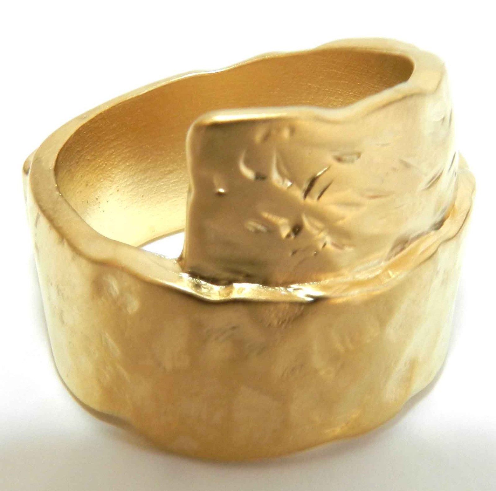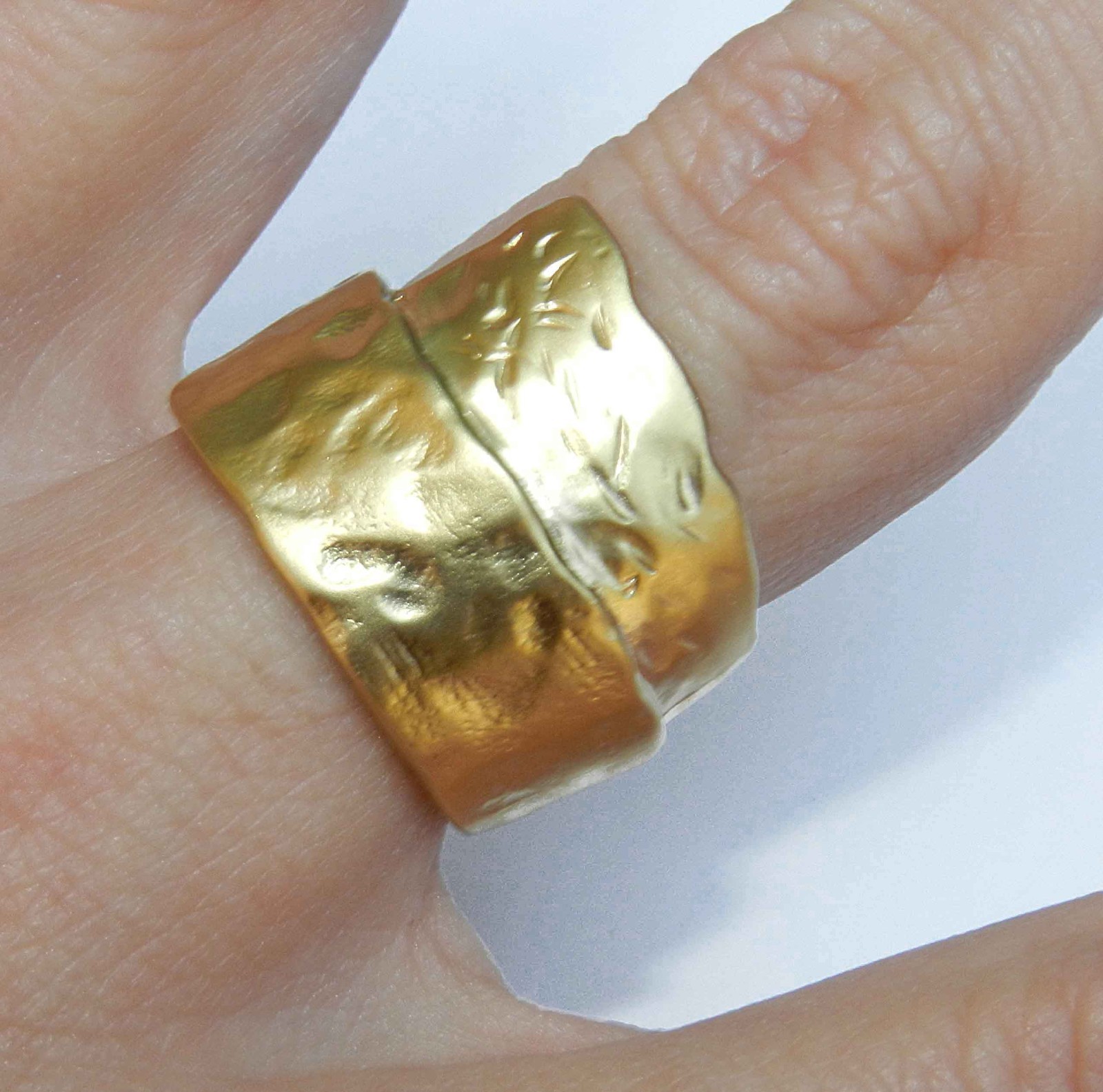 как выглядит Yellow Gold 24K Plated Hammered Effect Scroll Band Ring Sz 8 Israel Artisan фото