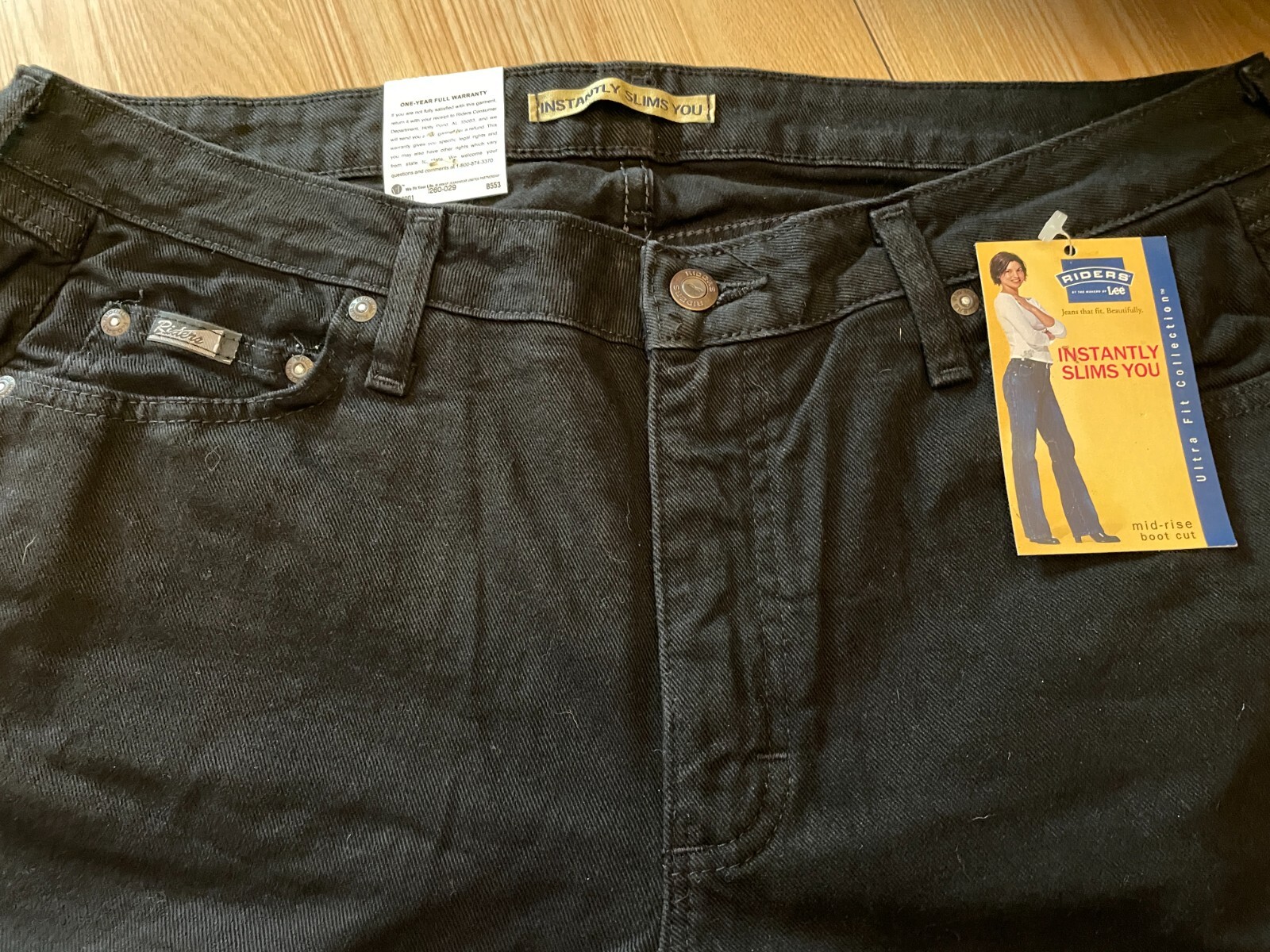 Riders By Lee Womens Mid Rise Bootcut Black Denim Stretch Jeans Size 16/32 M NEW