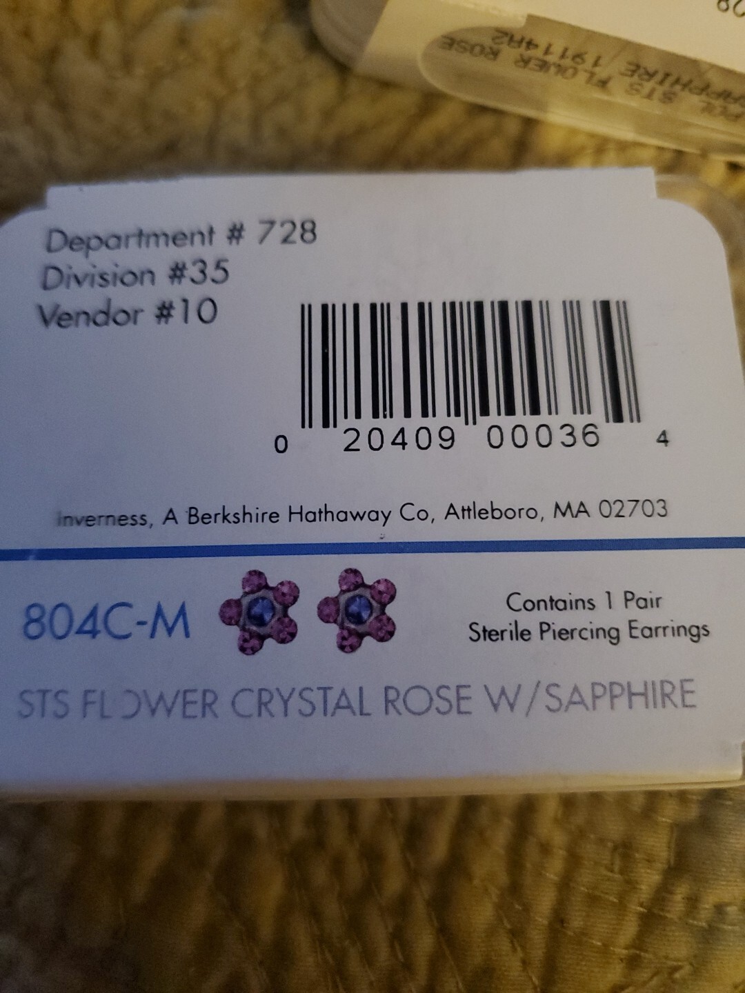 Inverness Sterile Piercing Earrings 804c-m sts flower crystal rose w/ sapphire