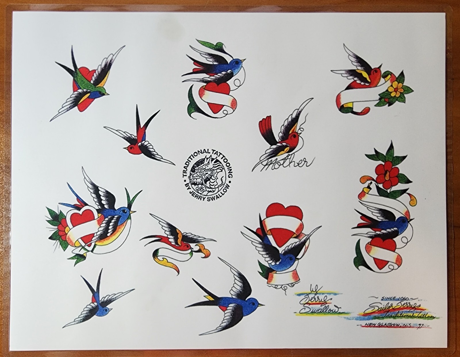 как выглядит 5 Sheet Sailor Jerry Swallow Traditional Vintage Style Tattoo Flash Sheet 11x14 фото