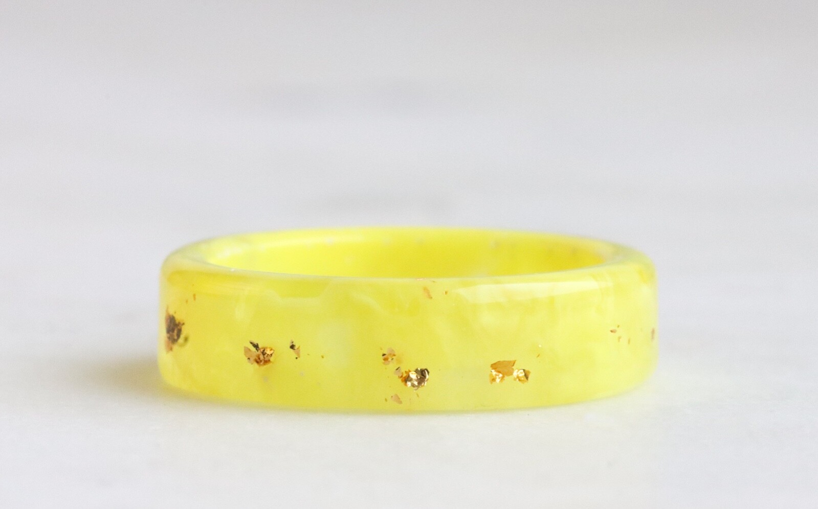Yellow Resin Ring with GoldFlakes, High-Quality Handmade Band, Mother's Day Gift