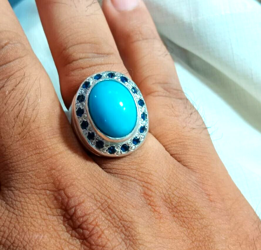 Hussaini Feroza Stone Ring Real Blue Turquoise Unisex Ring Silver Handmade Ring