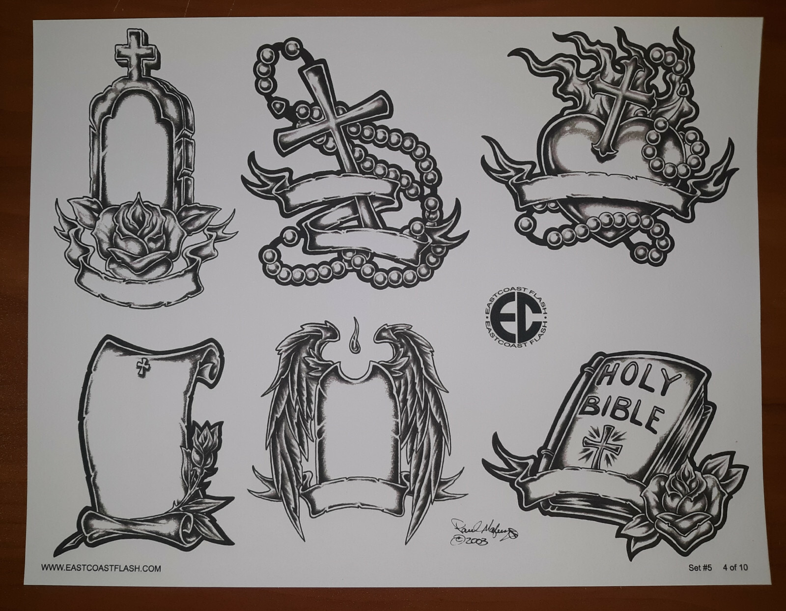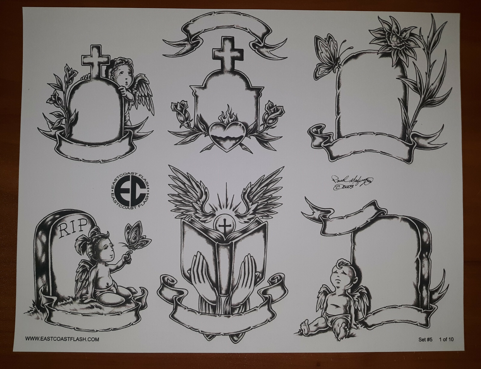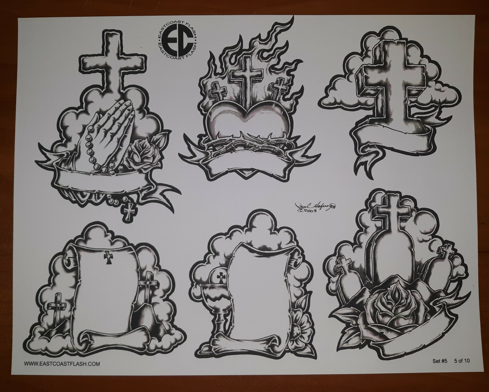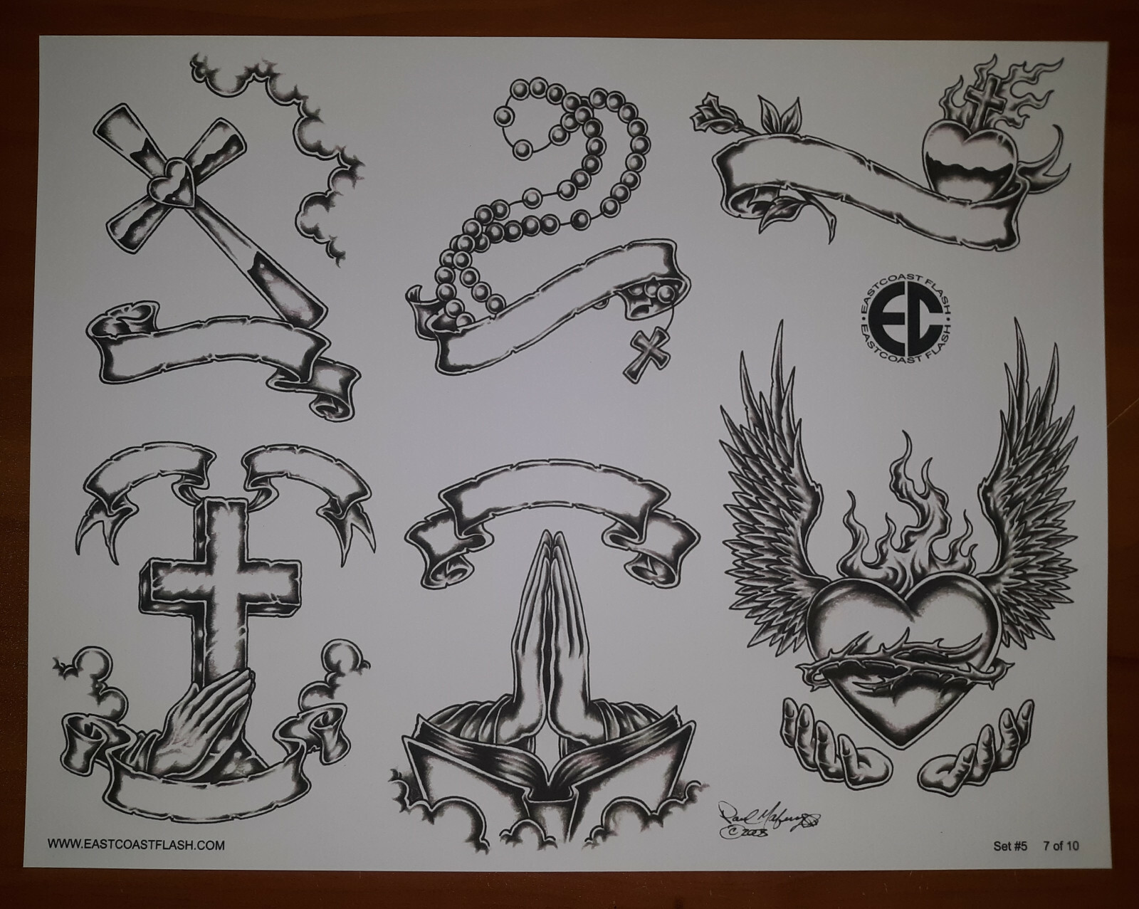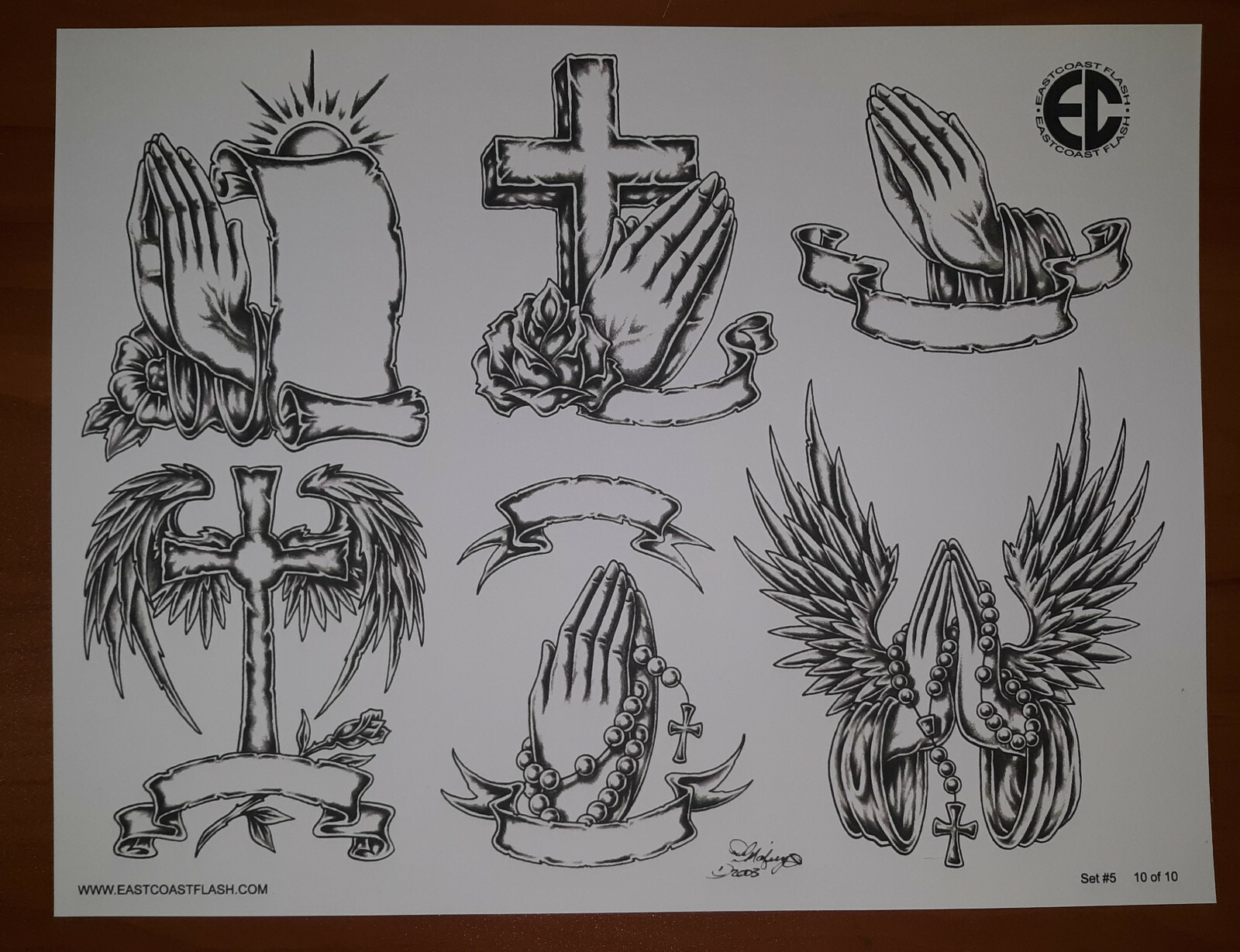 Black And Gray Religious Tattoo Flash 10 Sheets W/ Lines, 11x14 Praying Hands EC