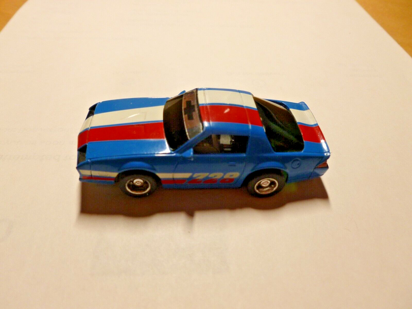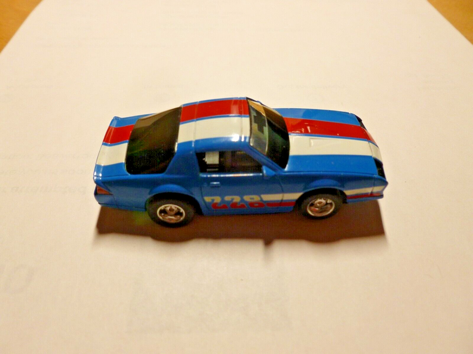 TYCO MATTEL HP-7 CHASSIC'82 CAMARO Z-28 IN BLUE/WHITE/RED WITH CHROME RIMS
