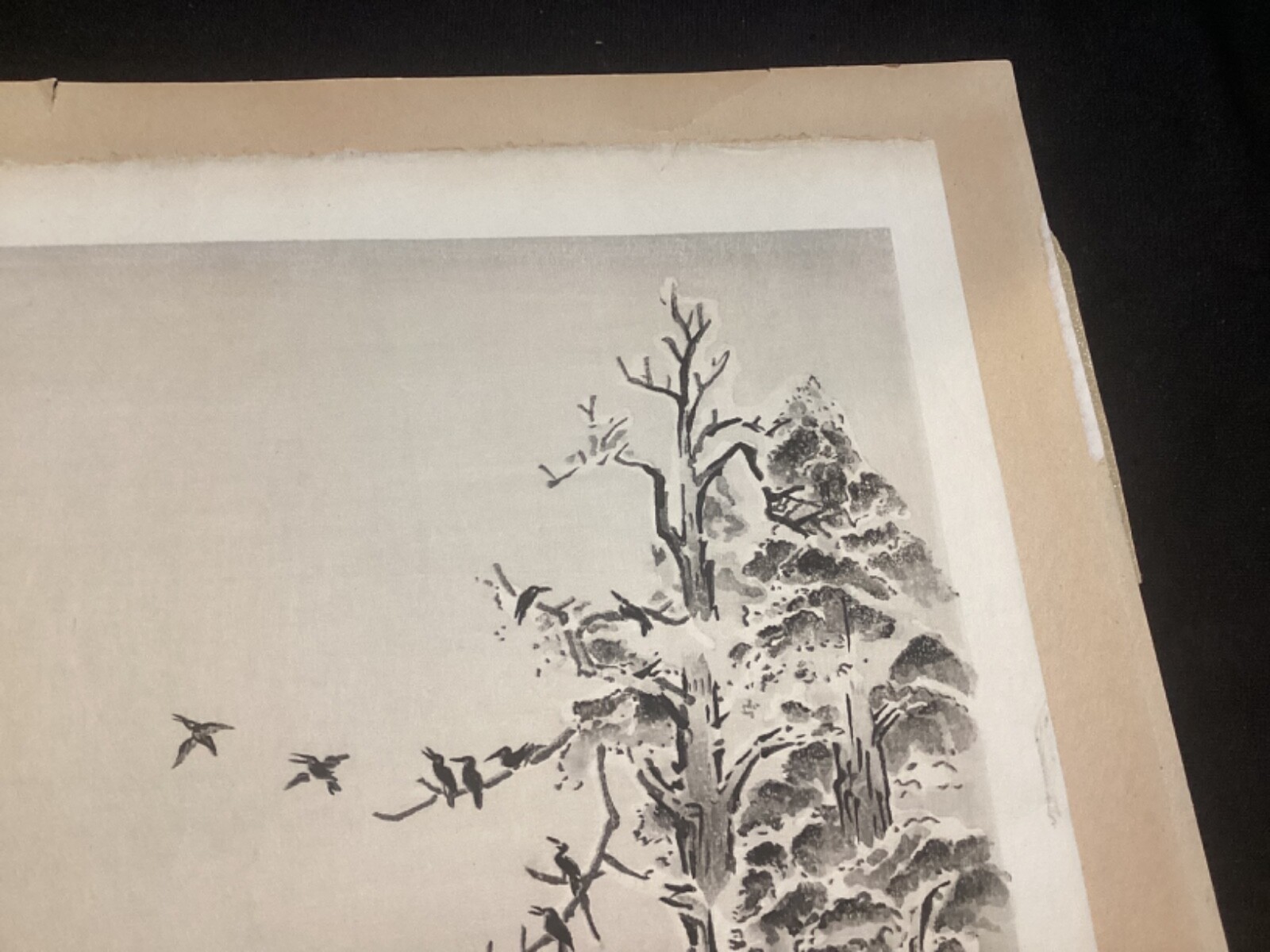 как выглядит Vintage Japanese Woodblock Print Figure at Mountain Lake Village Landscape фото