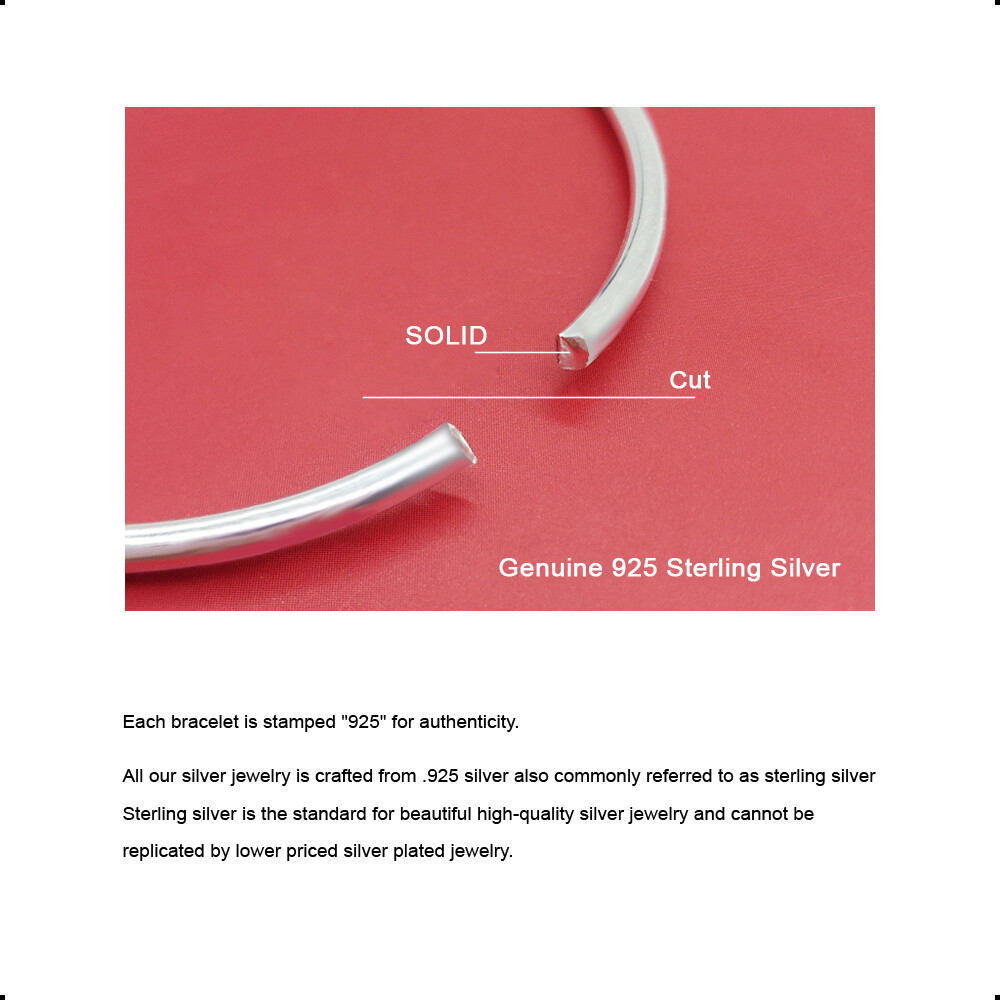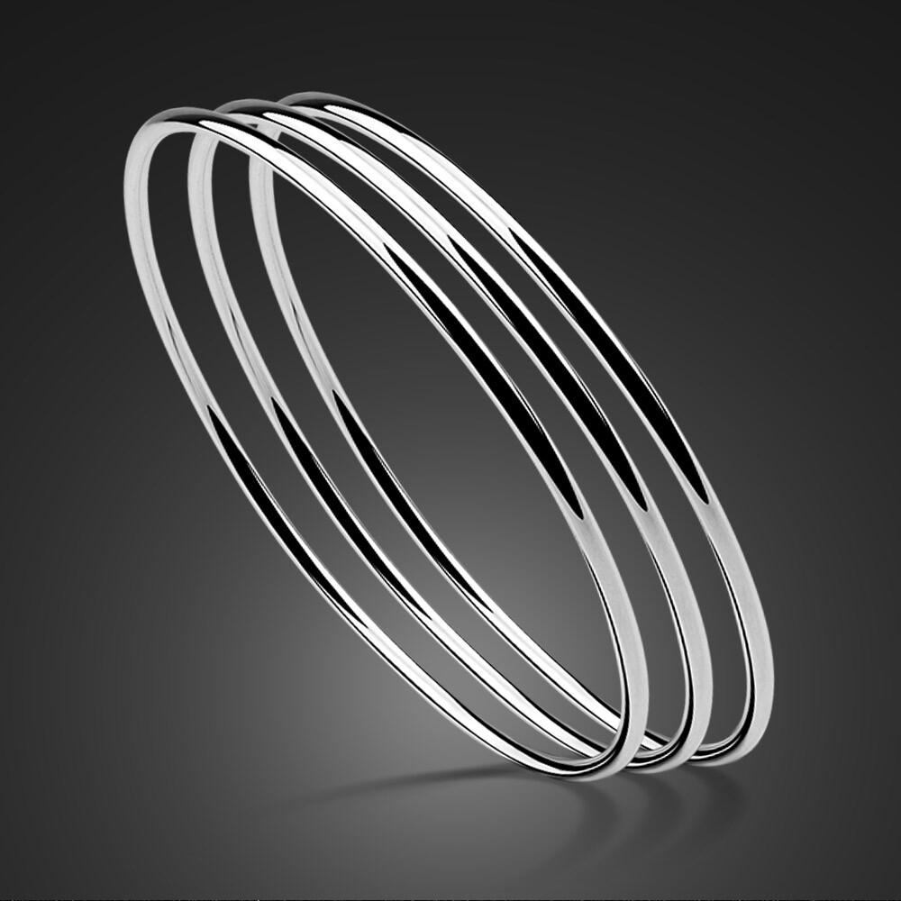 925 Sterling Silver 2MM 3 Colors Round Circle Bangle Bracelet for Women Girls