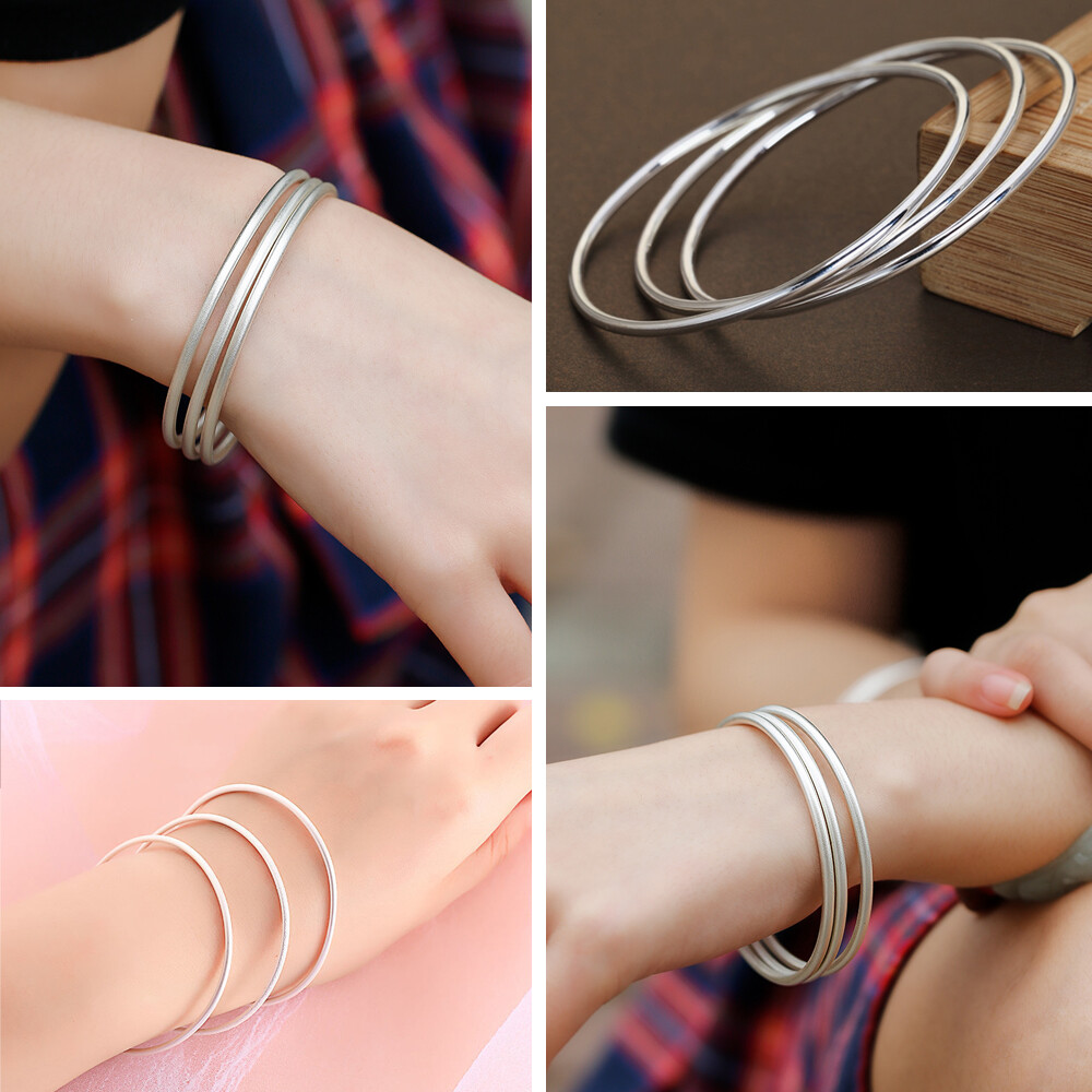 как выглядит 925 Sterling Silver 2MM 3 Colors Round Circle Bangle Bracelet for Women Girls фото