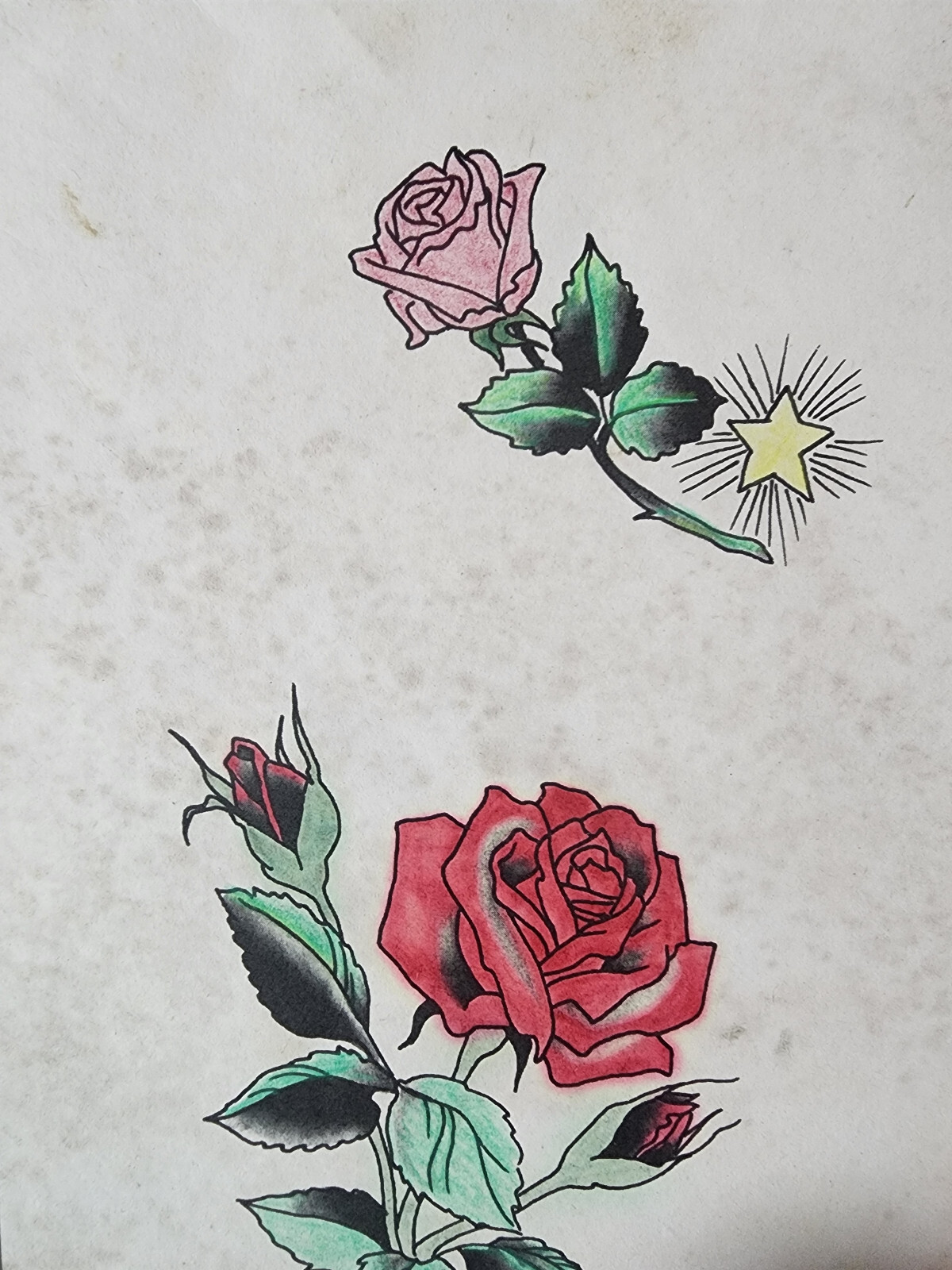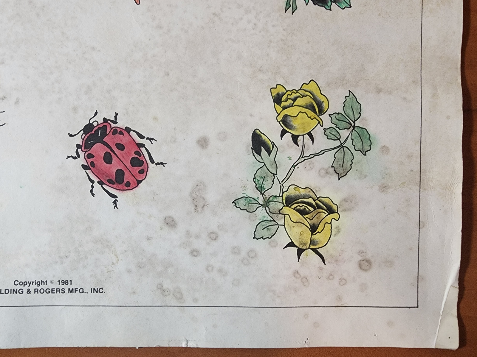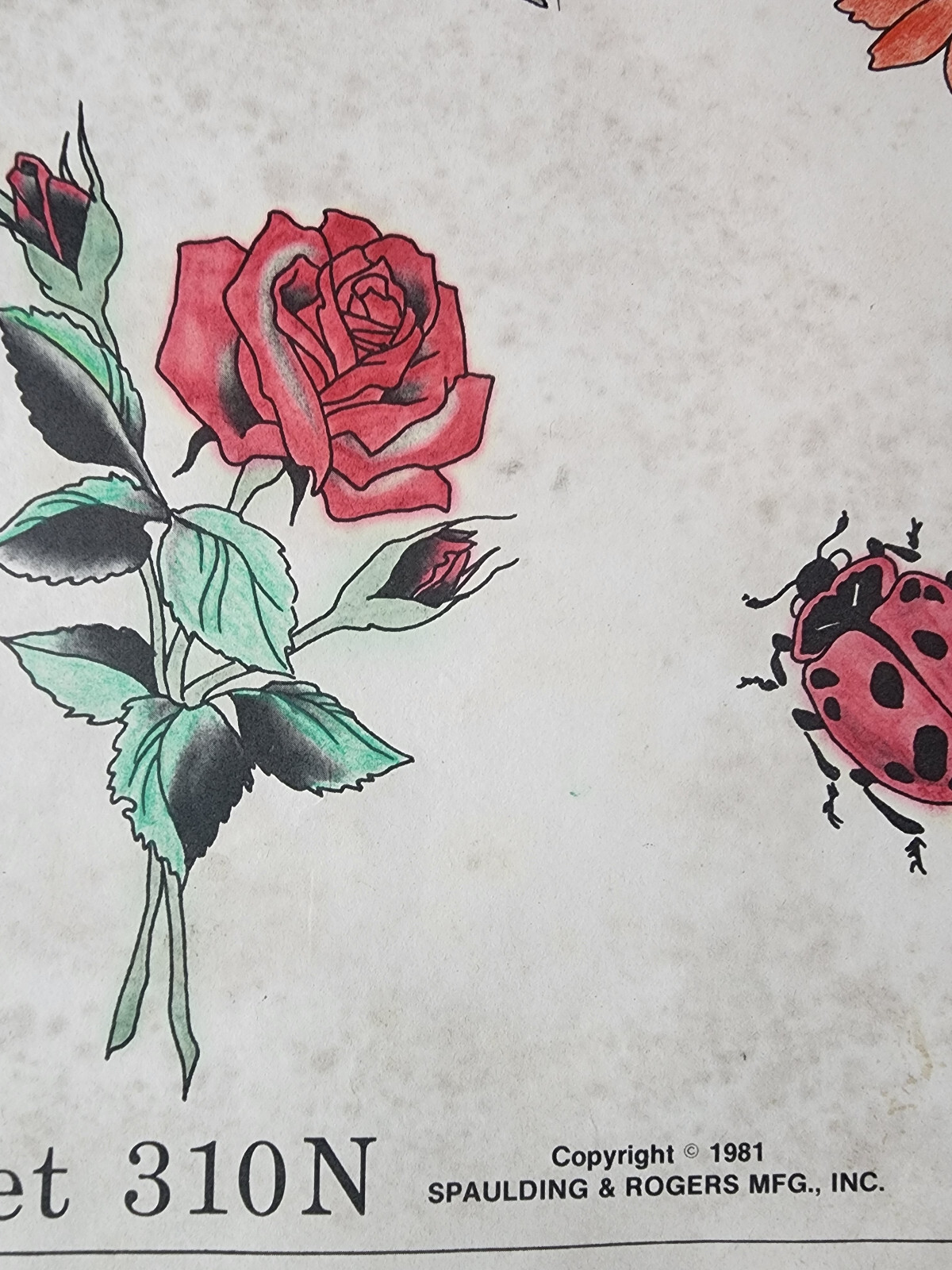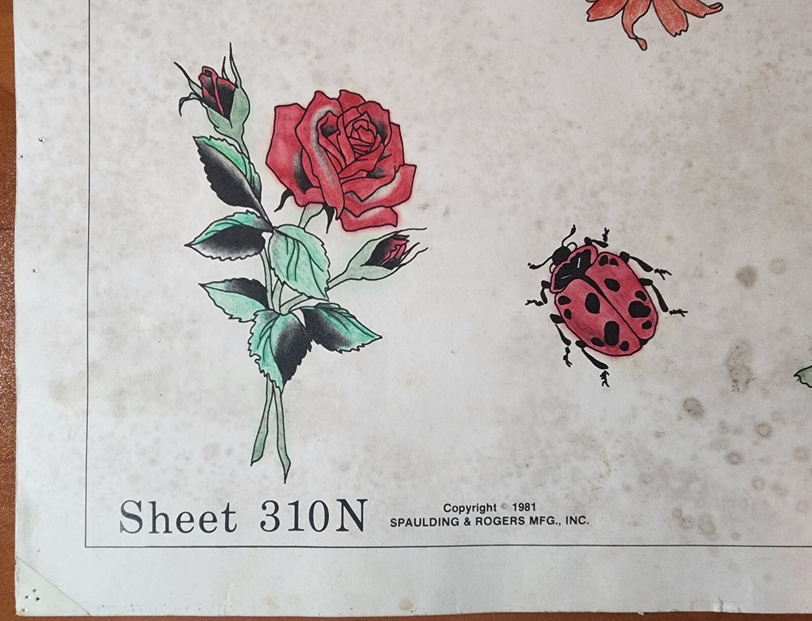 Vintage Traditional 1981 Spaulding Rogers Hand Colored Tattoo Flash Sheet Used