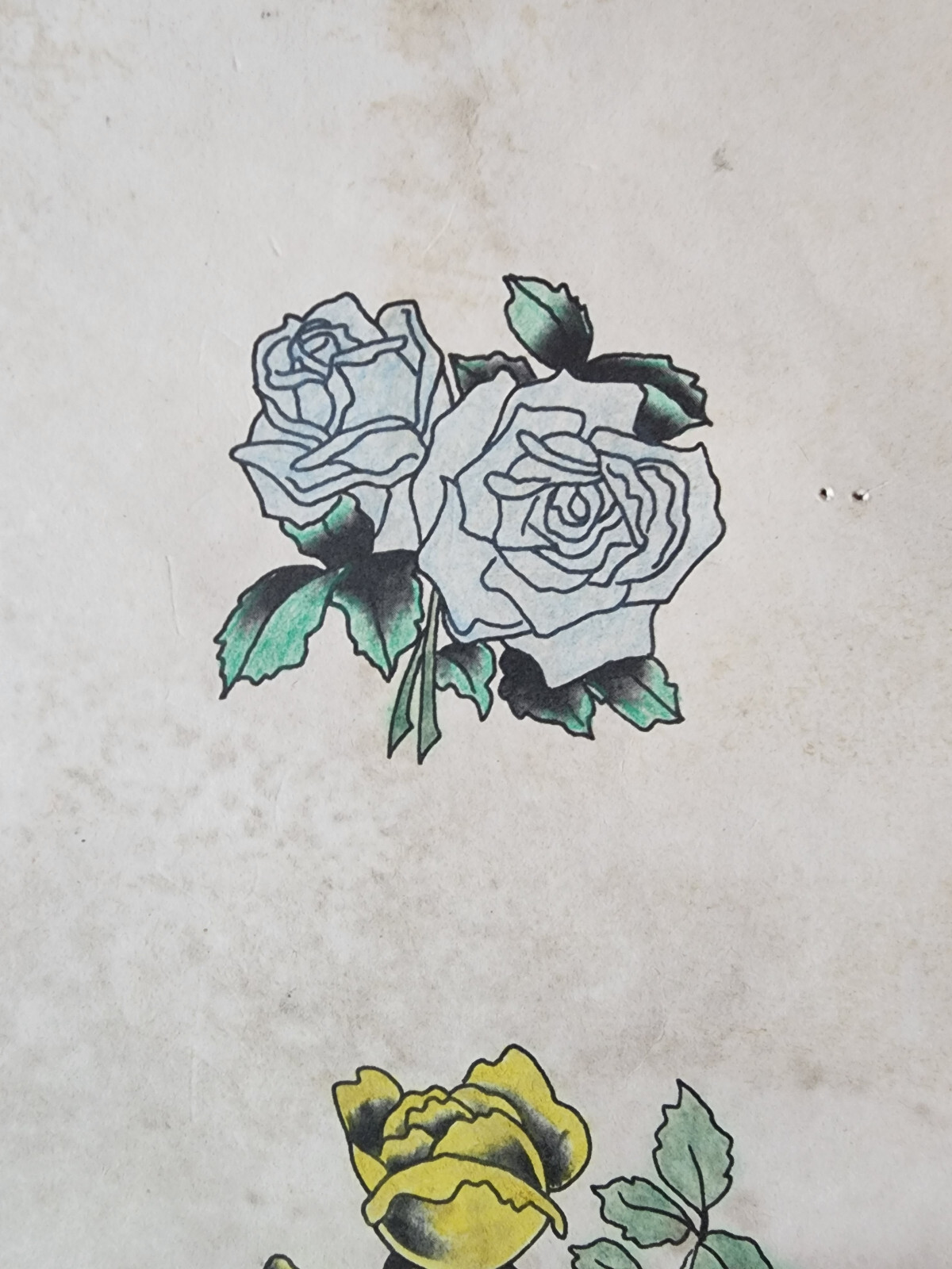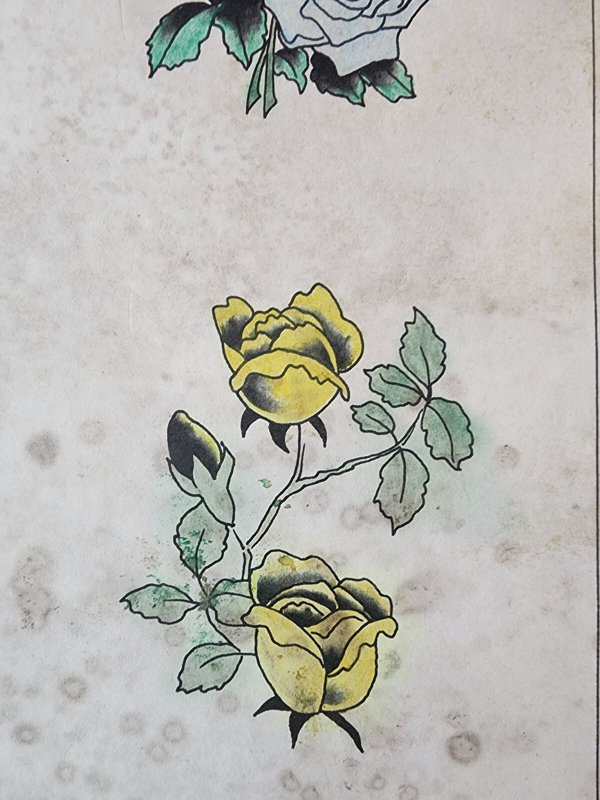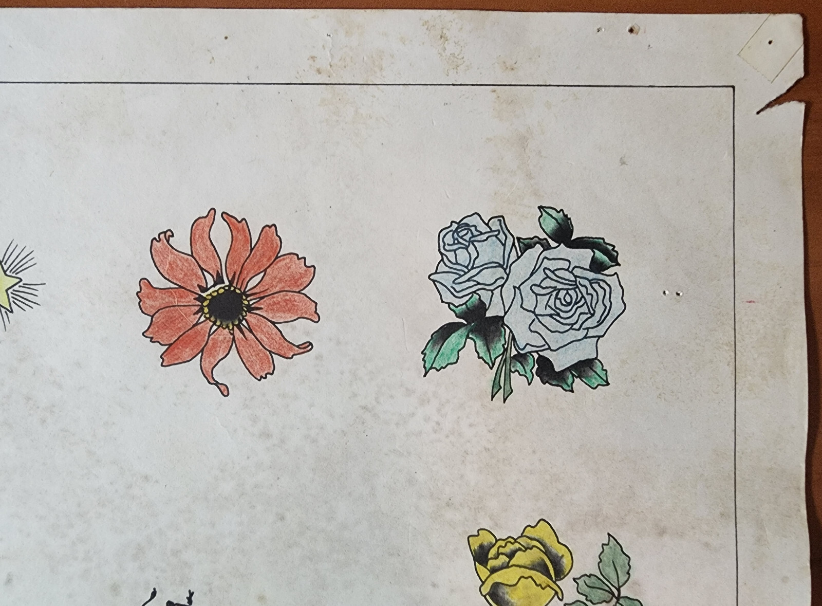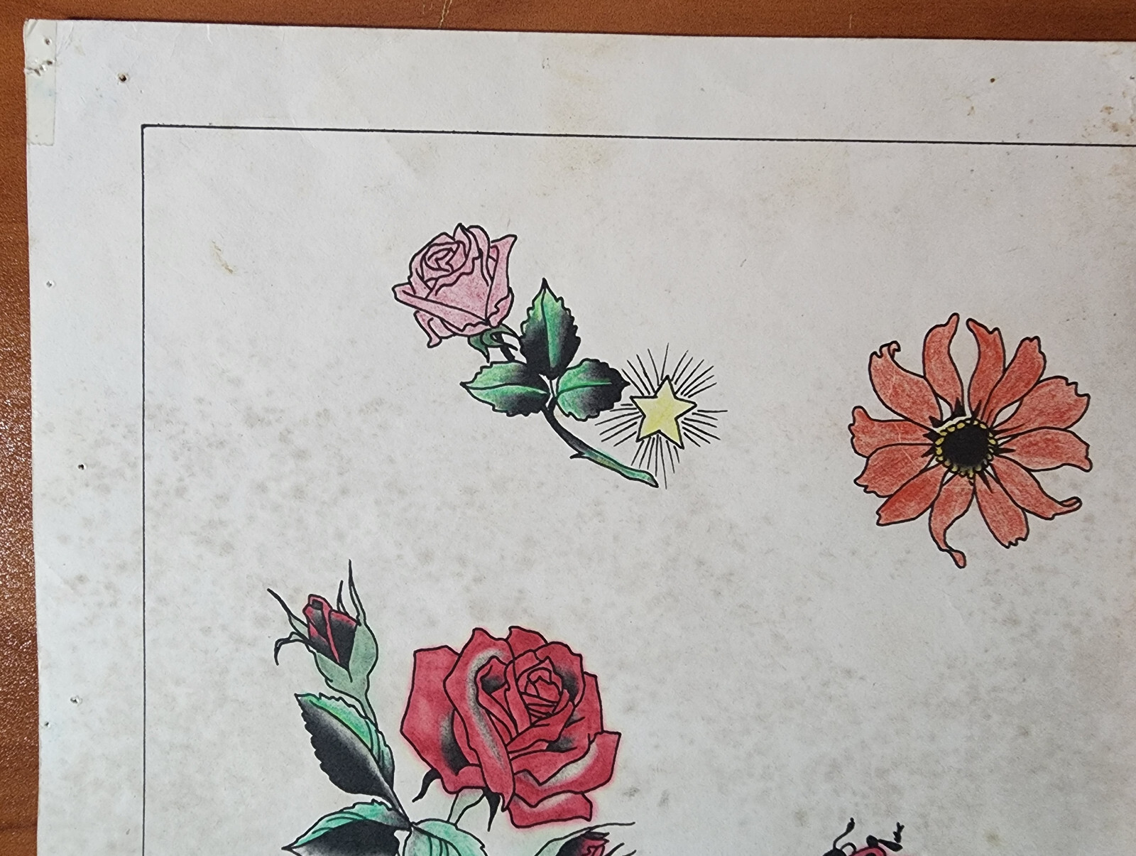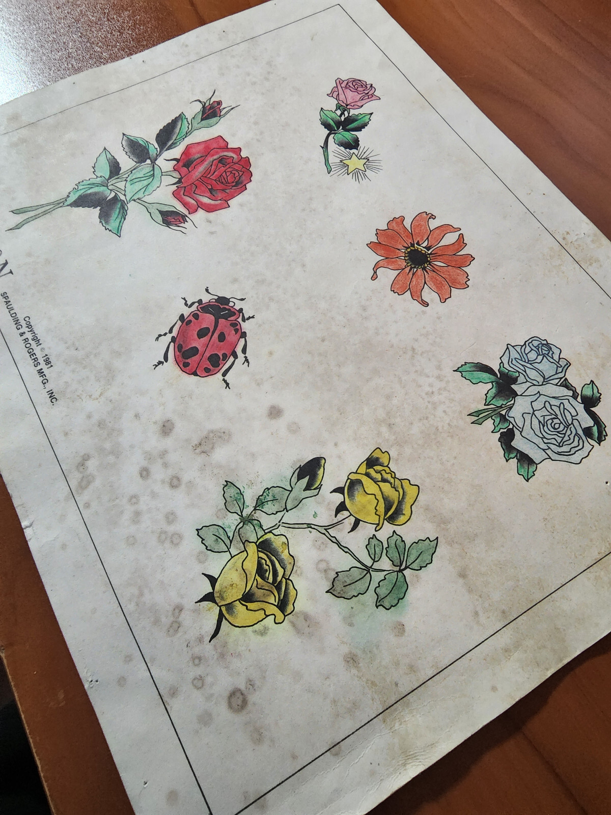 как выглядит Vintage Traditional 1981 Spaulding Rogers Hand Colored Tattoo Flash Sheet Used фото