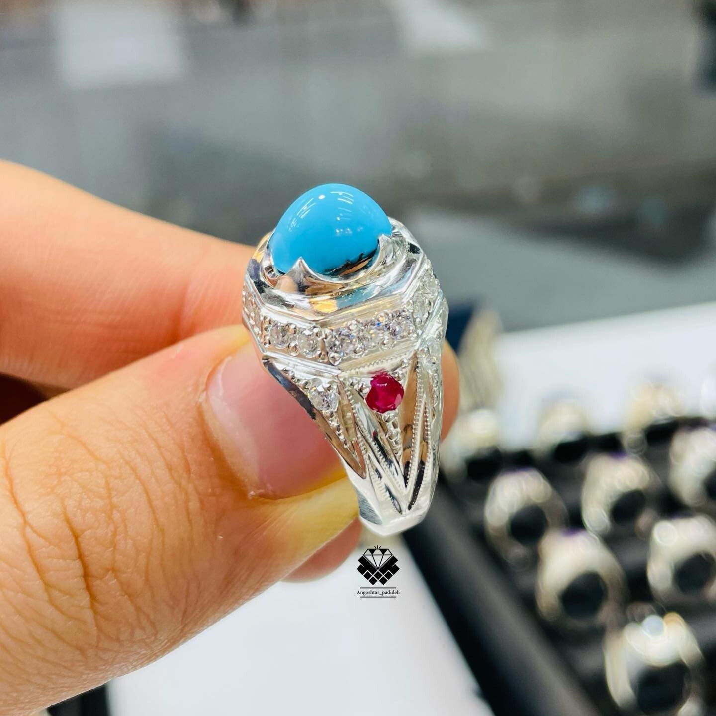 как выглядит Beautiful 100 Real Turquoise Blue Feroza Ring Unisex Sterling Silver 925 Frame фото