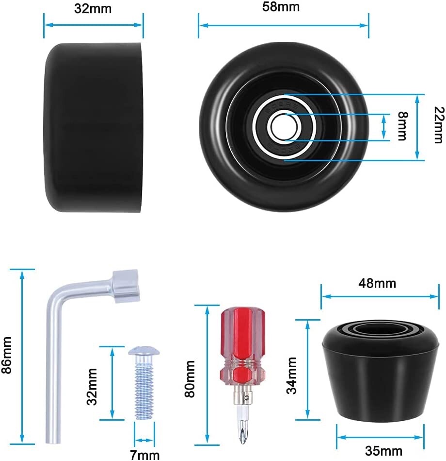 Tanzfrosch 8 Pack Roller Skate Wheels Bearings Installed 2 Toe Stoppers Black