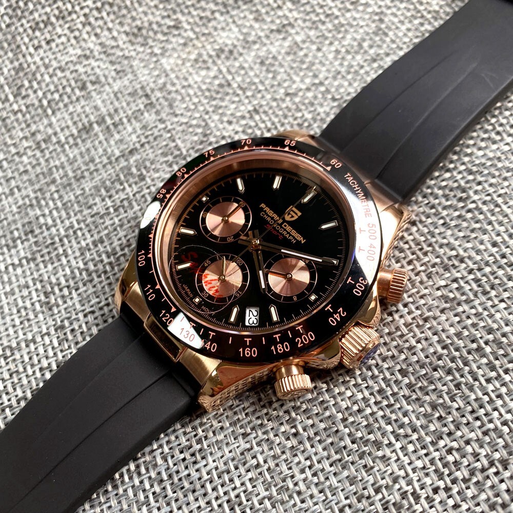 как выглядит PAGANI DESIGN Black Dial Full Chronograph Mens watch VK63 Quartz Wrist Watch фото