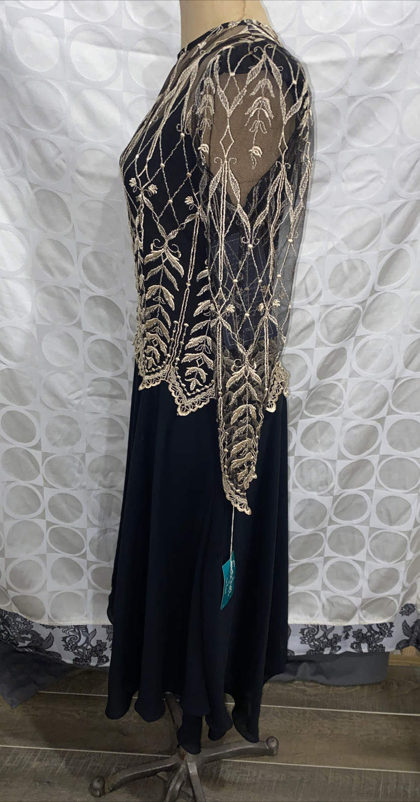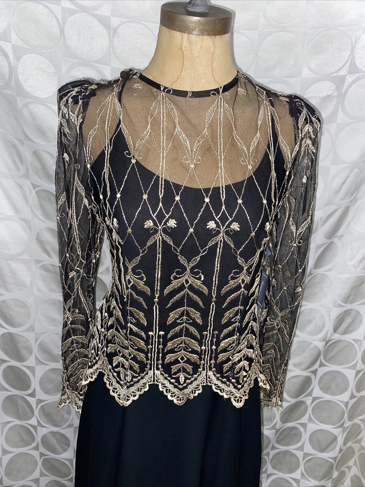 Vtg Cachet Dress Bari Protas Elegant Black Gold Formal Small USA Made