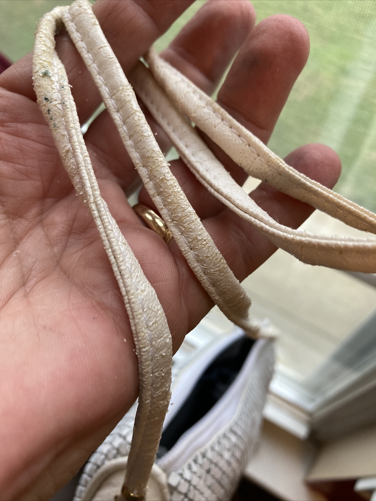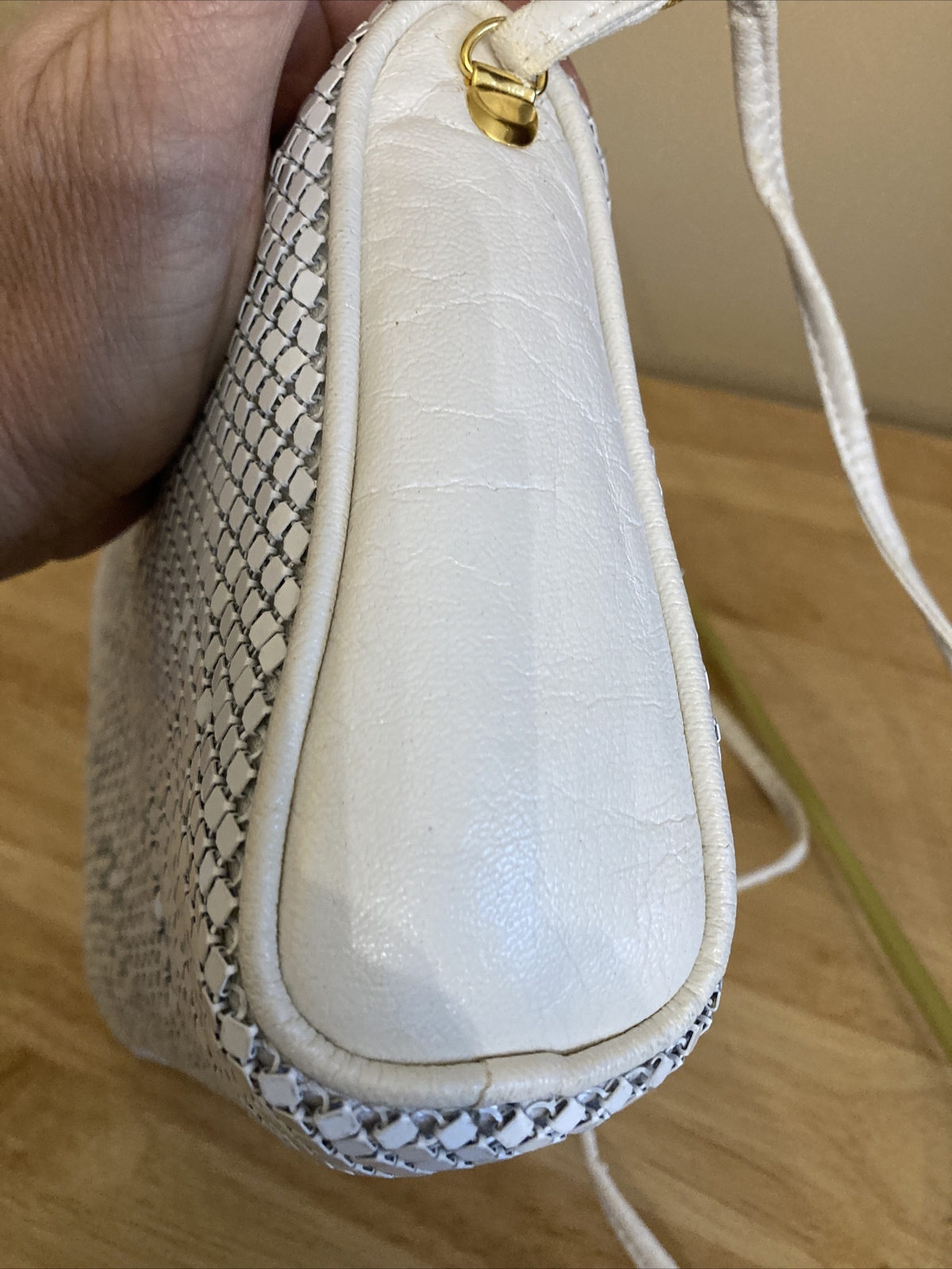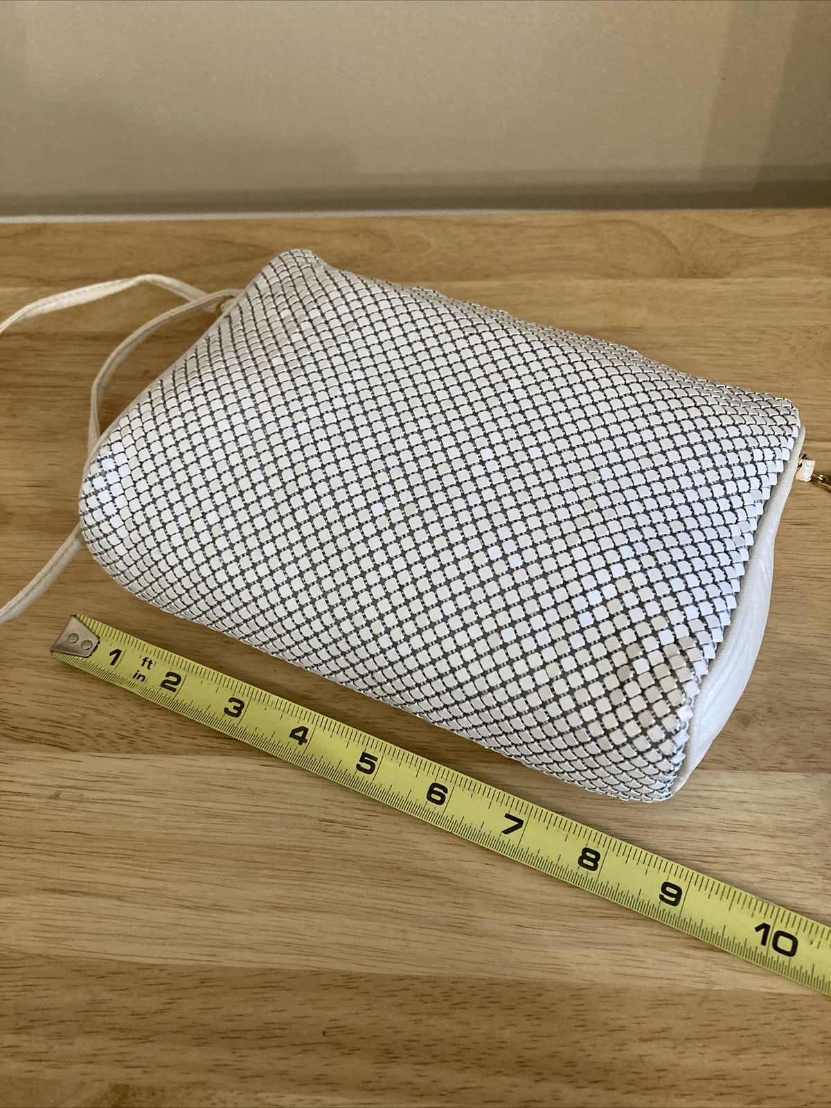 как выглядит Vintage small white metal mesh purse about 8 in x 5.5 inch фото