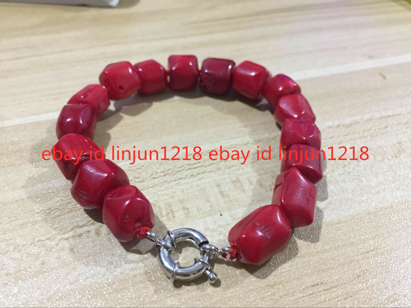 New 12X14MM Natural Red Coral Bead Cylinder Choker Beads Bracelet 7.5''