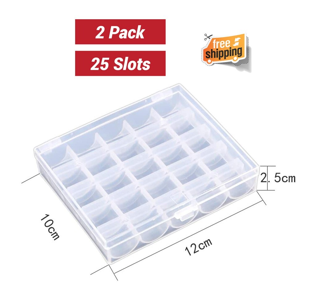 2 Pack 25 Slots Empty Bobbins Spools Box, Sewing Craft Plastic Case Storage Box
