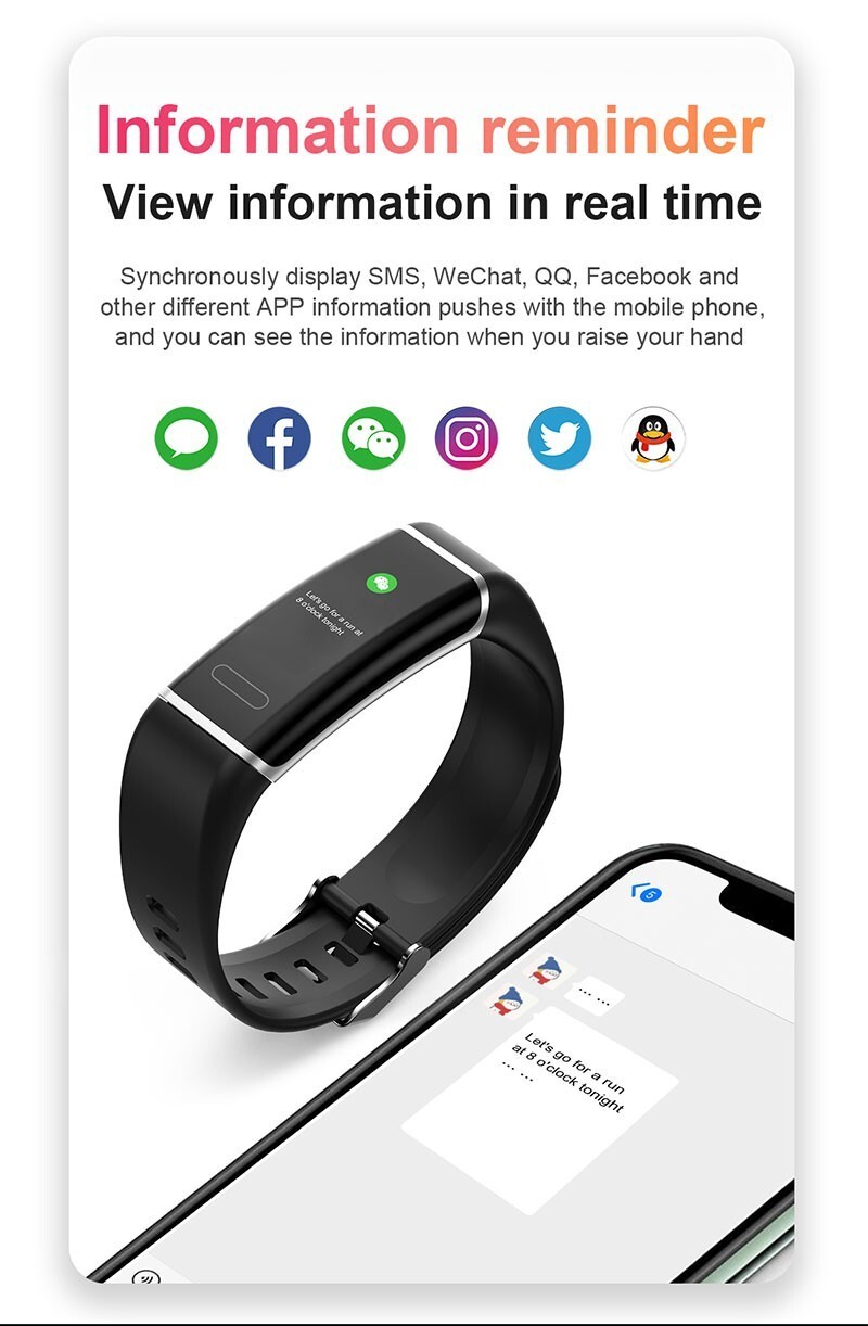 T6 Smart Breslet Waterproof Heart Rate Pressur Monitor Fitness Sports multi