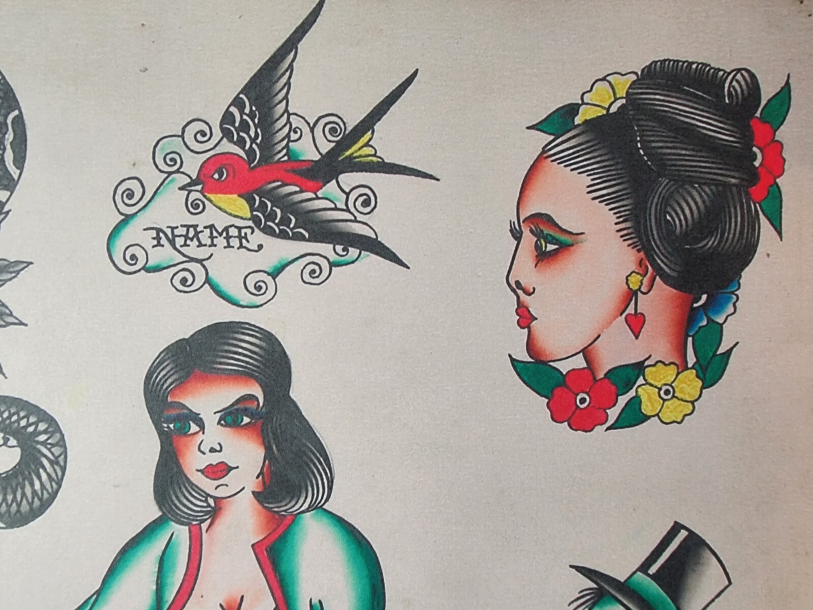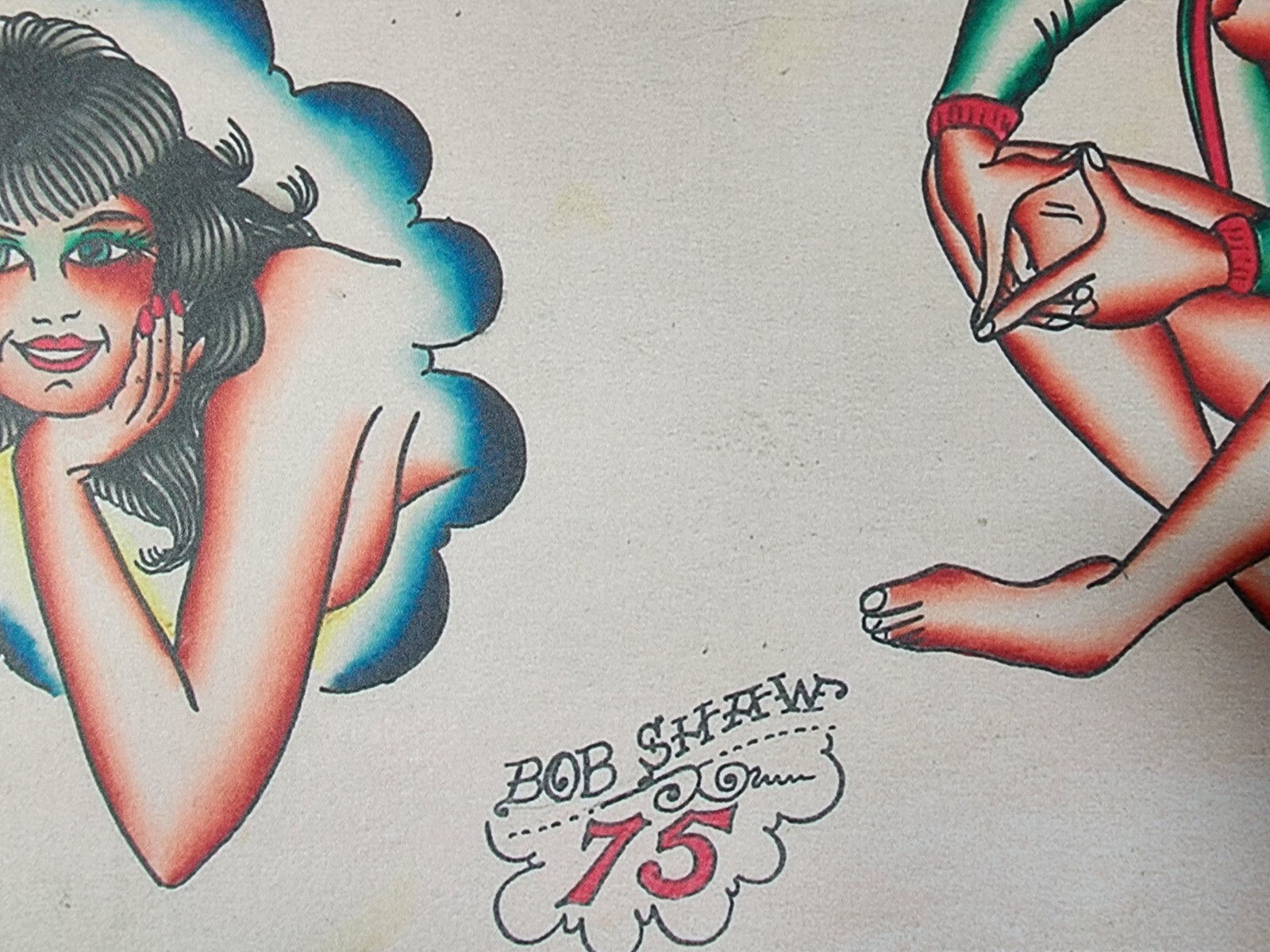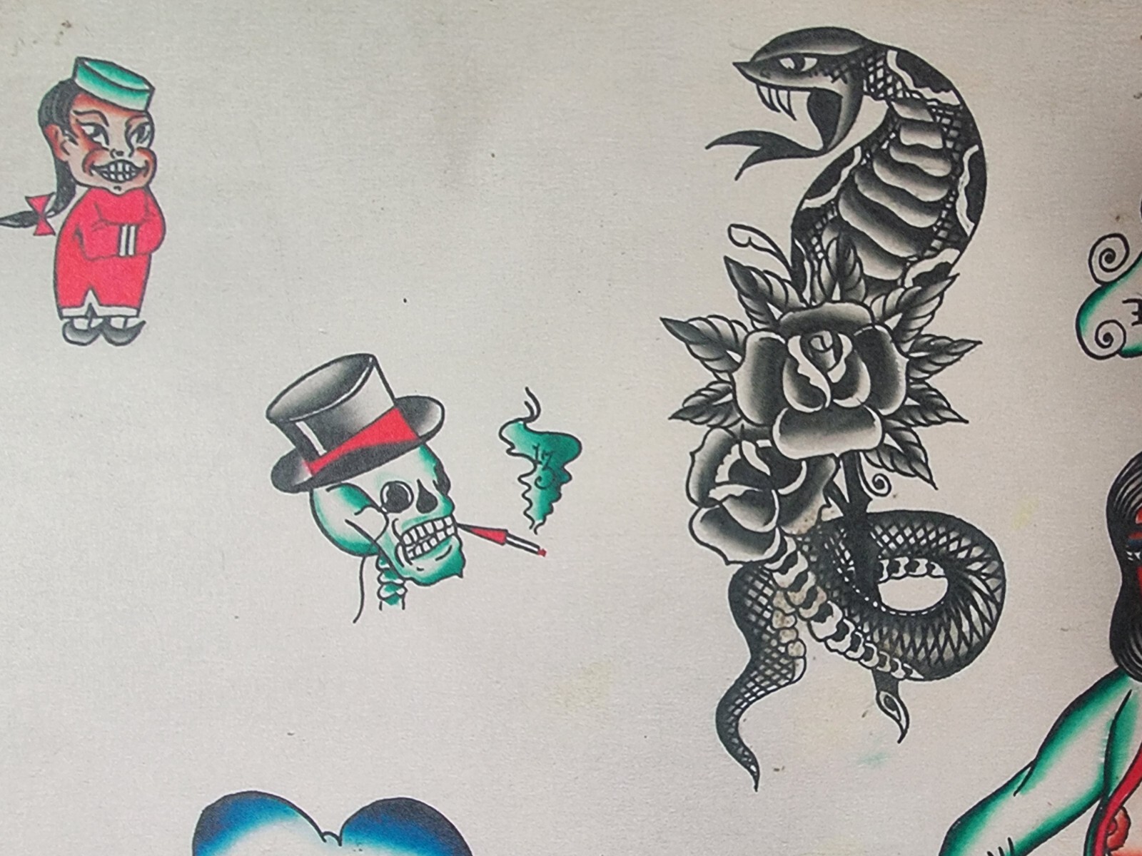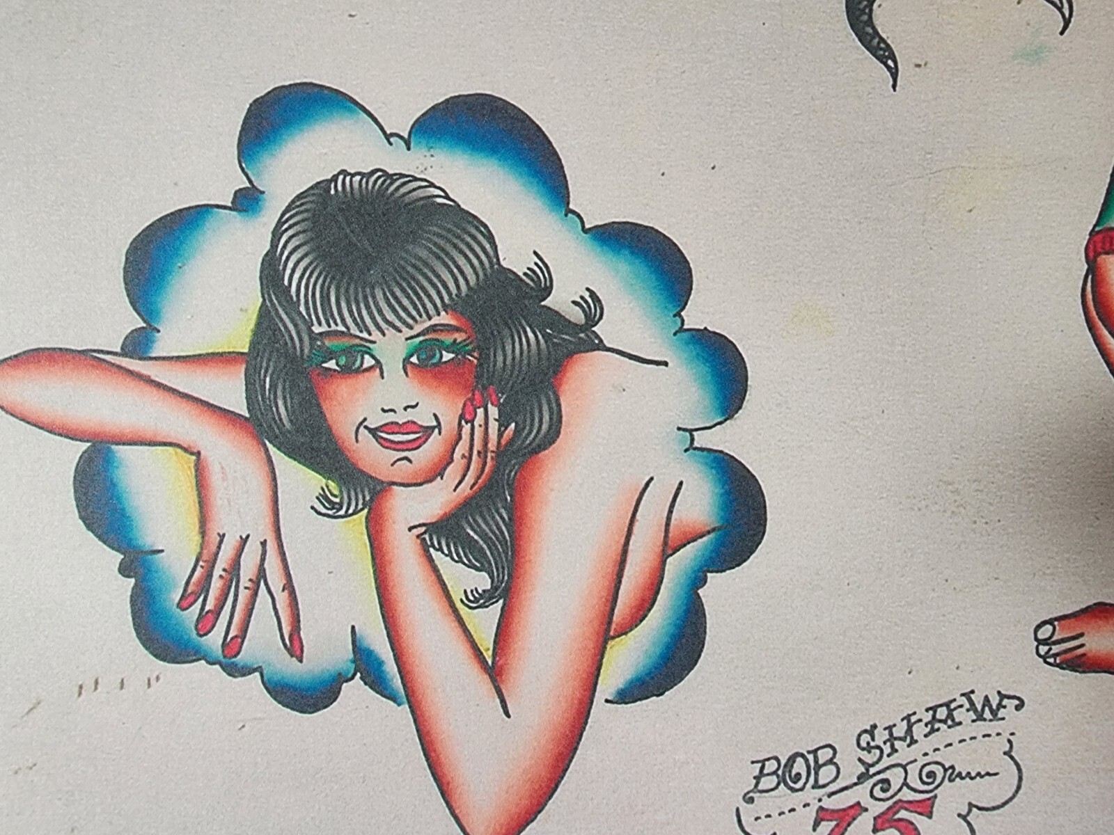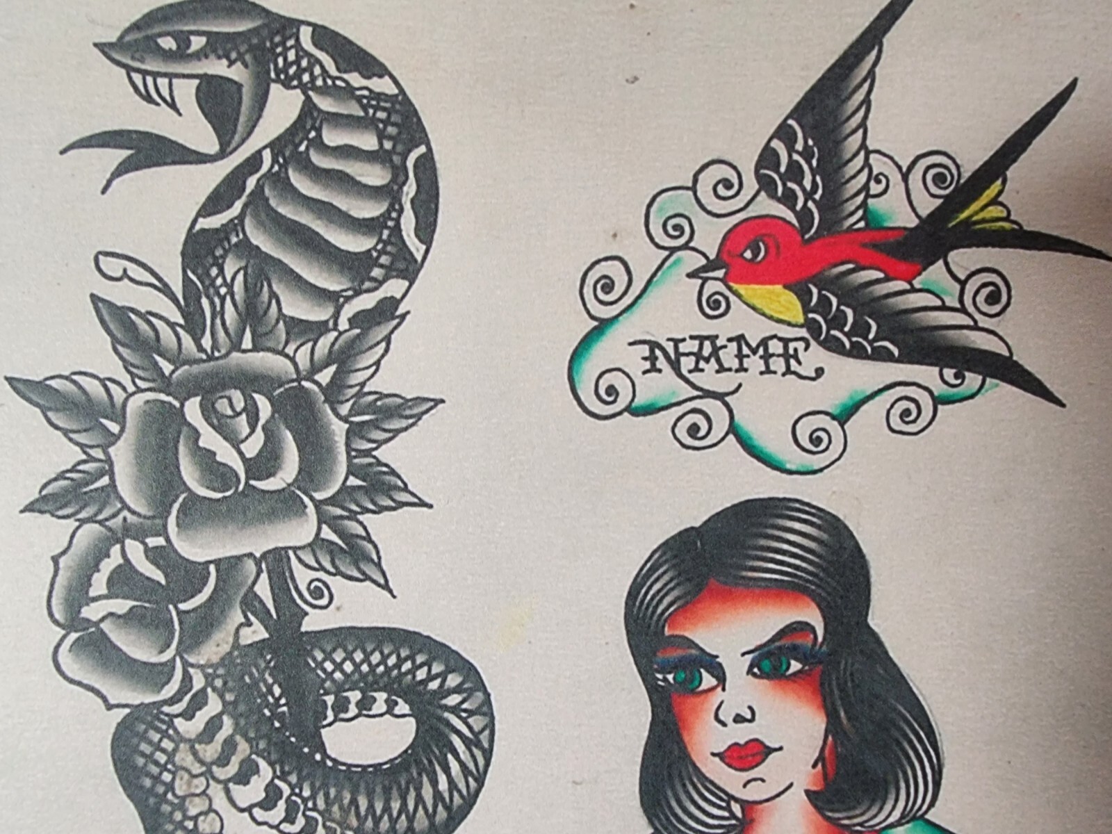 Bob Shaw Traditional Vintage Style Tattoo Flash Sheet 75 Girl, Snake, Skull, Sun