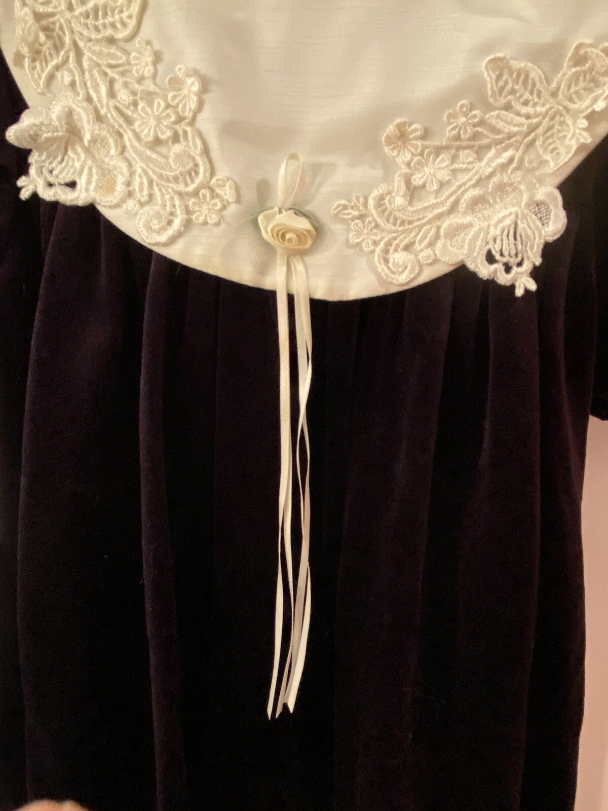 как выглядит Vintage Rare Editions Girl s size 3/4 Purple Velvet Dress Ivory Lace EUC фото