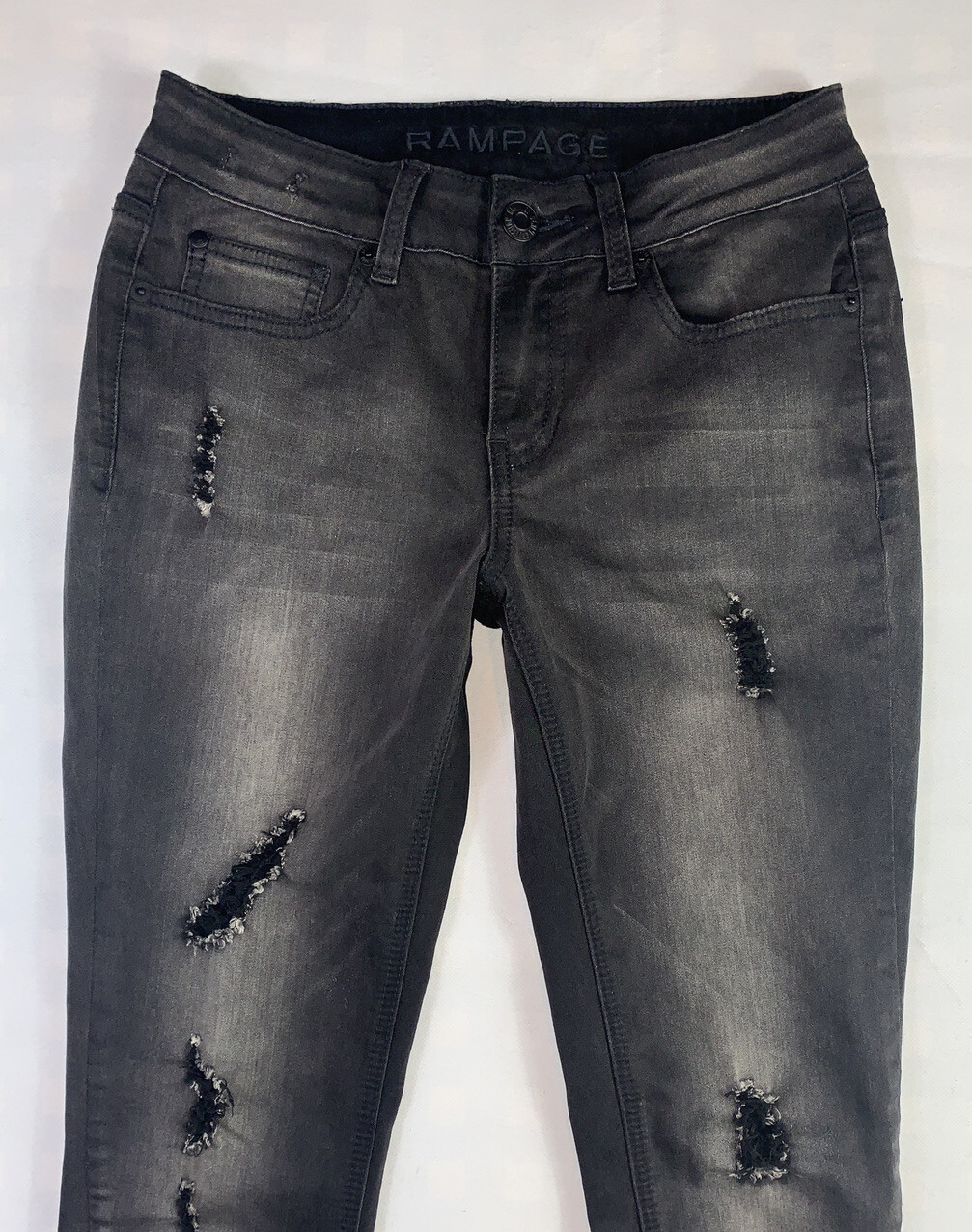 Rampage Sophie Black Skinny Jeans Distressed Mid-Rise Juniors Women s Sz 7 NEW