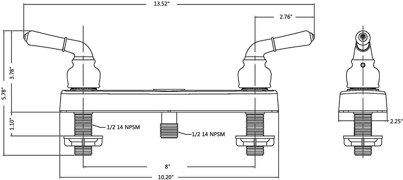 Chrome Finish 3320CP Mobile Home Non-Metallic Two Handle 8 Shower Faucet