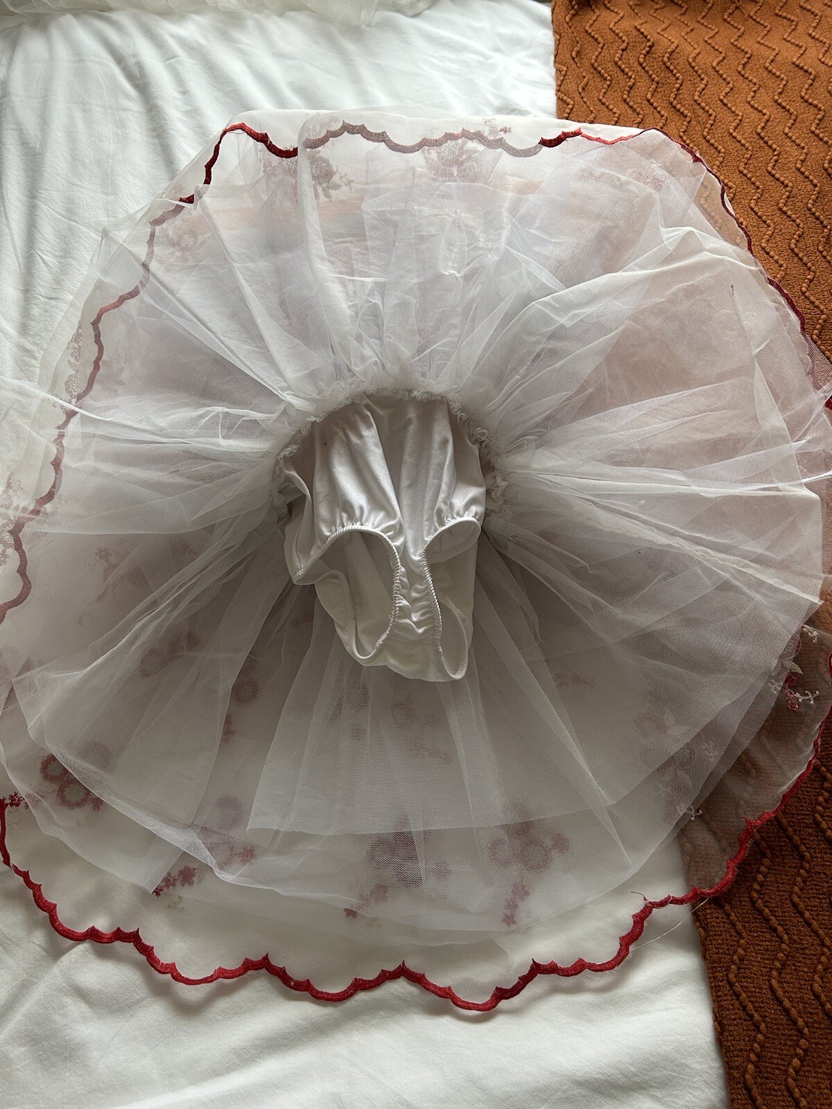 как выглядит Girls Medium White and Red Ballet Dance Tutu Dress with leotard attached фото