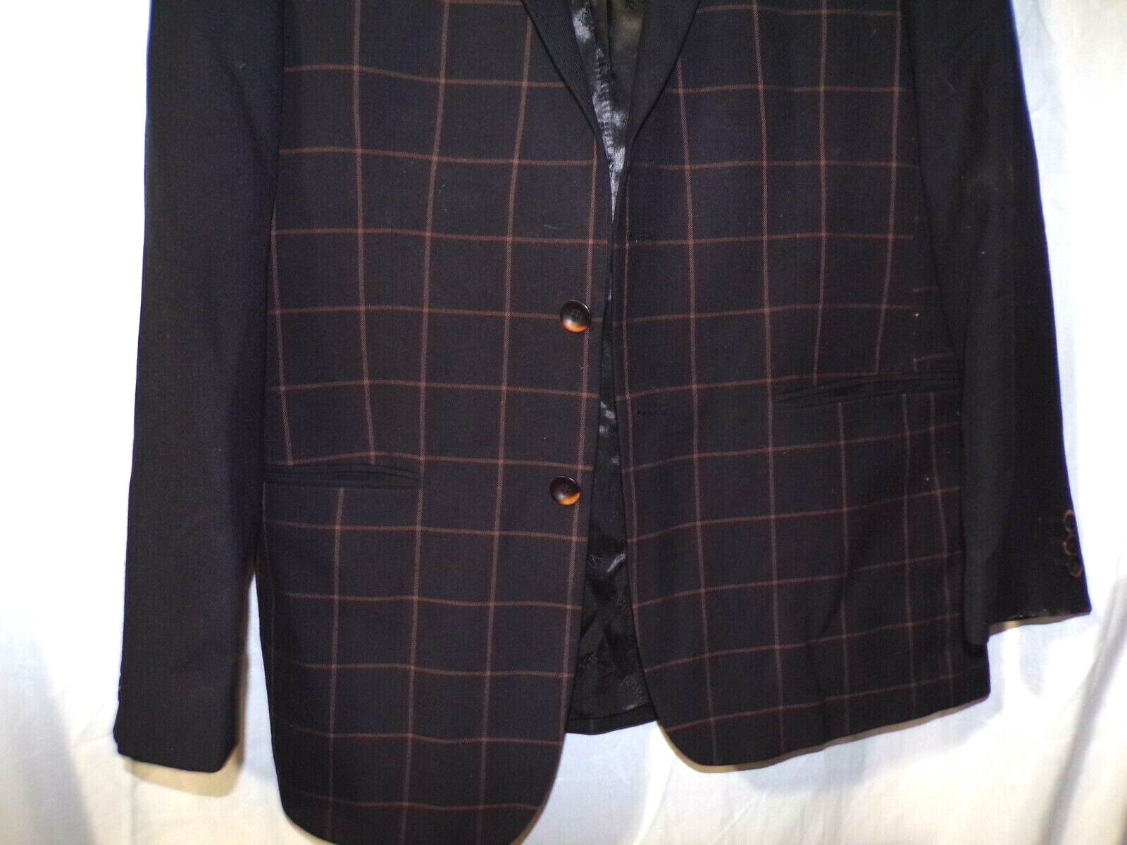 как выглядит VINCI Mens Black Windowpane Double Breasted 2 Button Modern Fit Suit Size XL фото